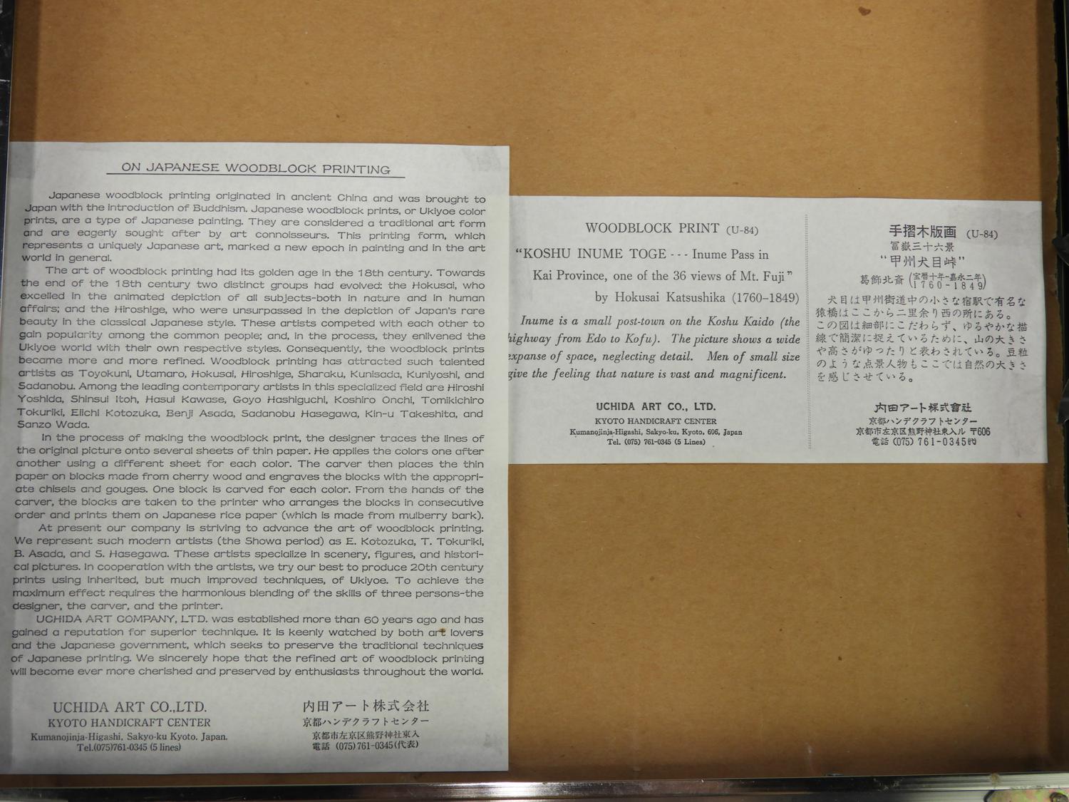 japanese woodblock print, 7" x 9", "mt. fuji"
