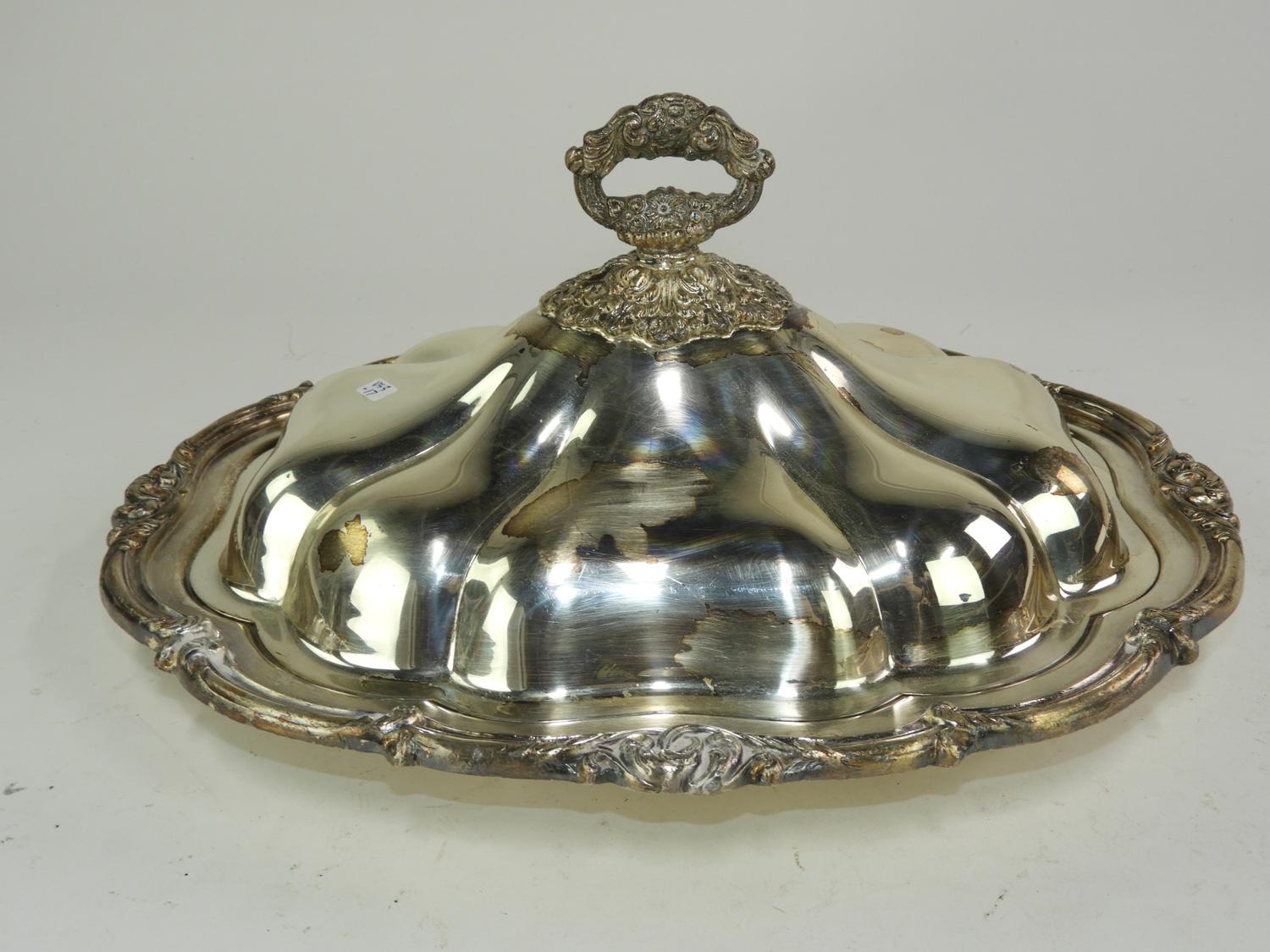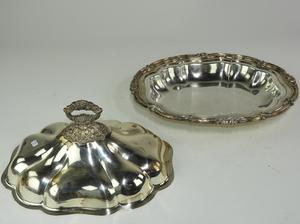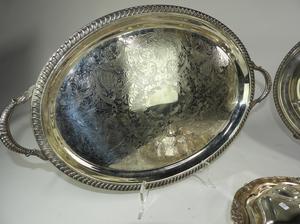 silver plate entre dish and two large trays