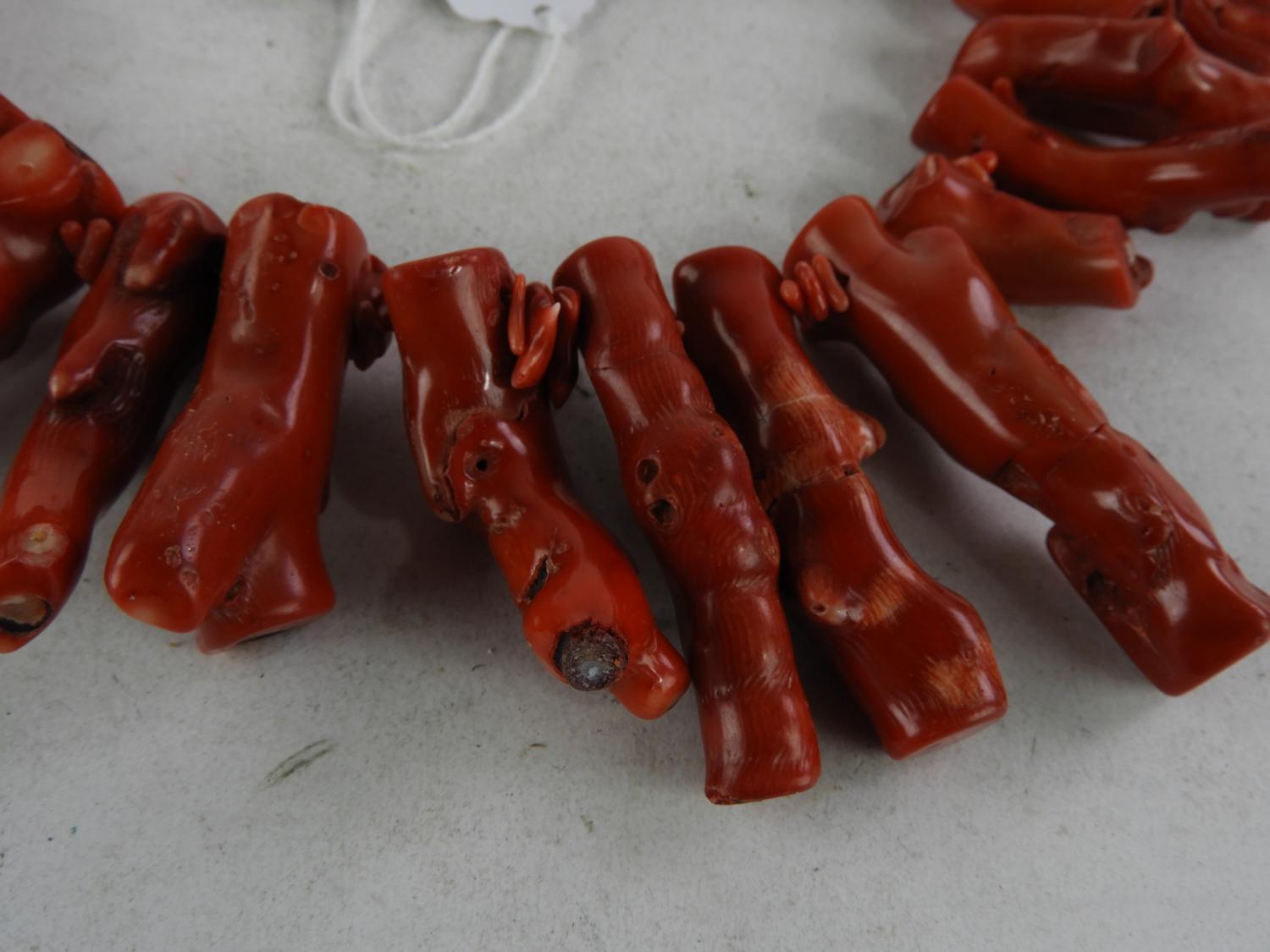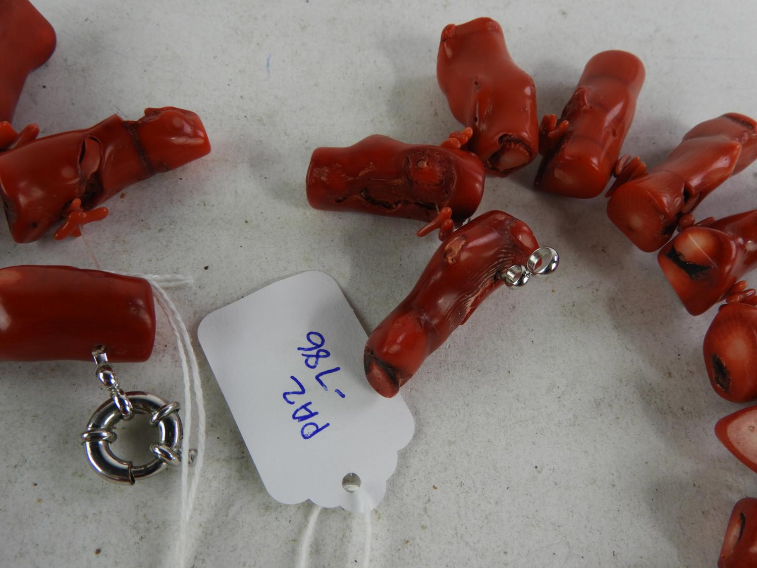 giant red coral necklace, length 21"
