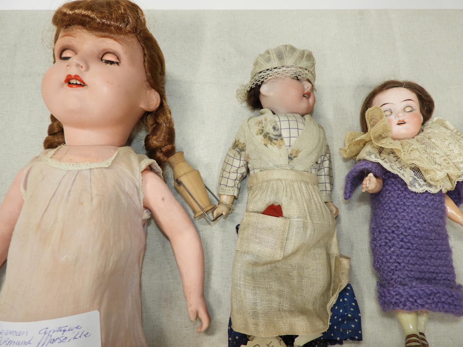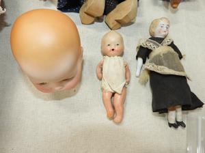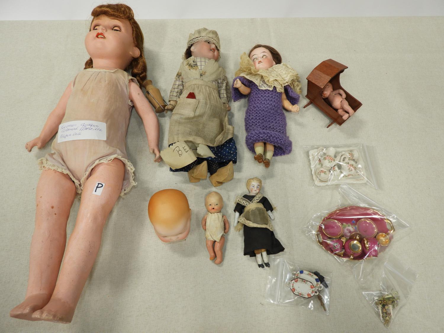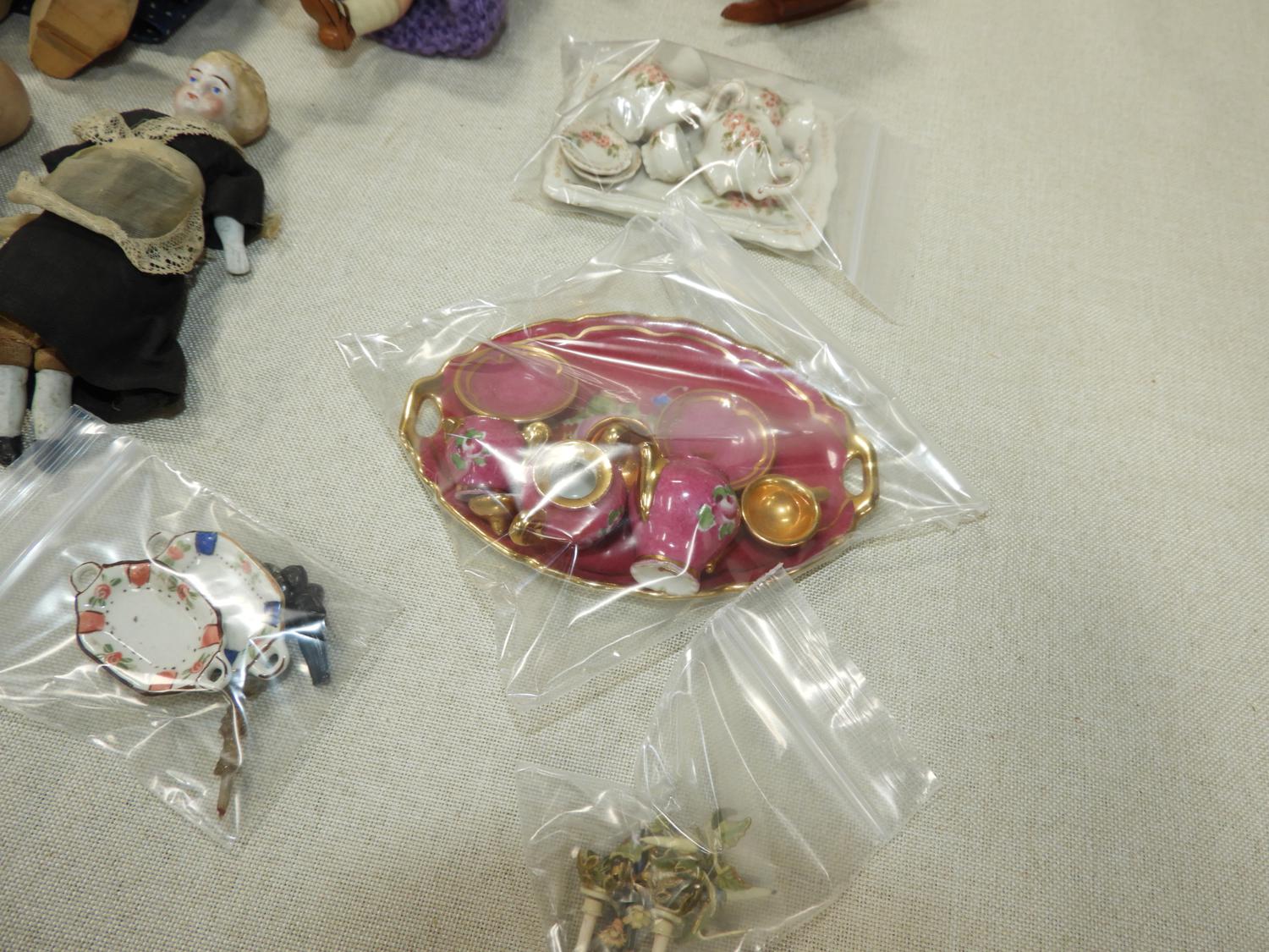 lot of vintage and antique dolls and miniature porcelain tea sets