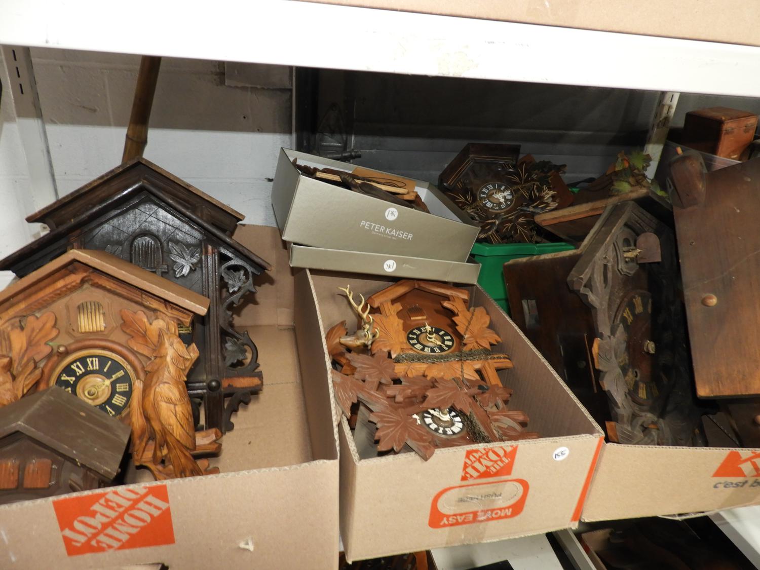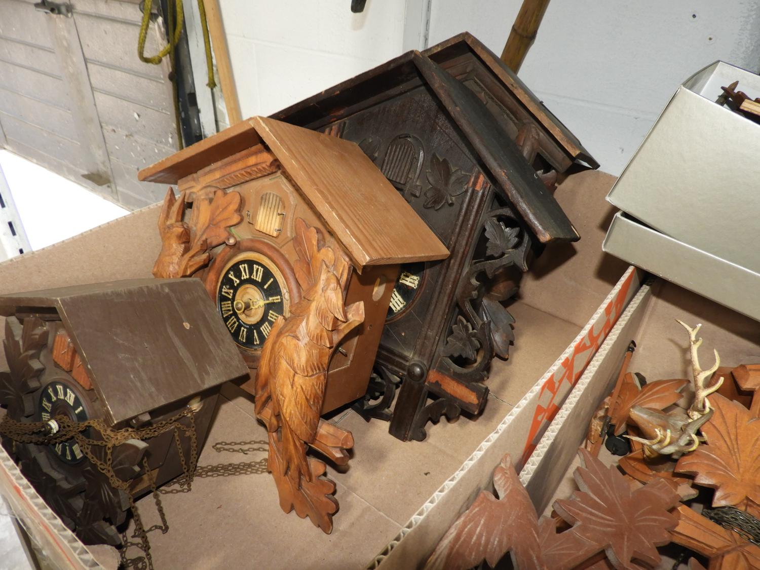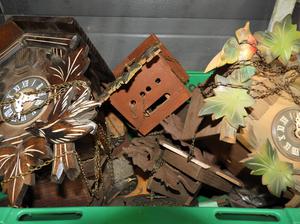 large lot of coo coo clocks and parts