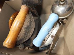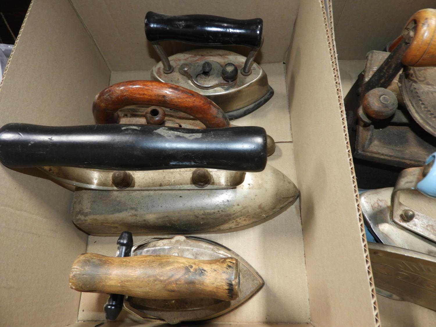 lot of antique and vintage irons