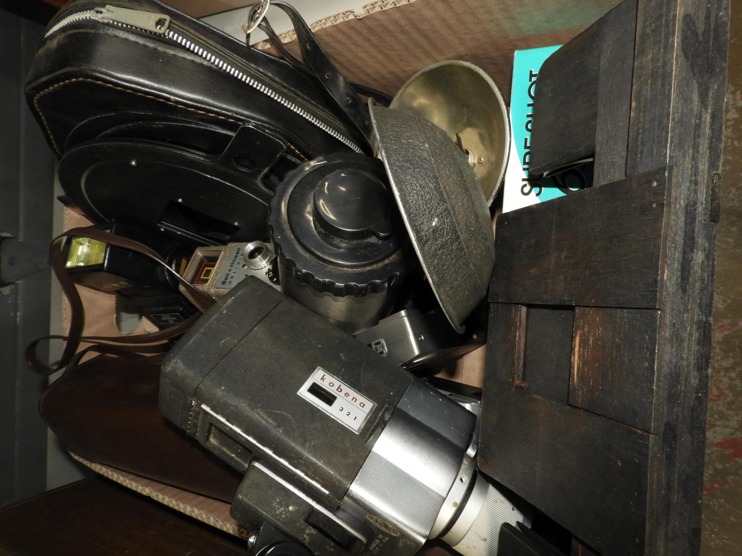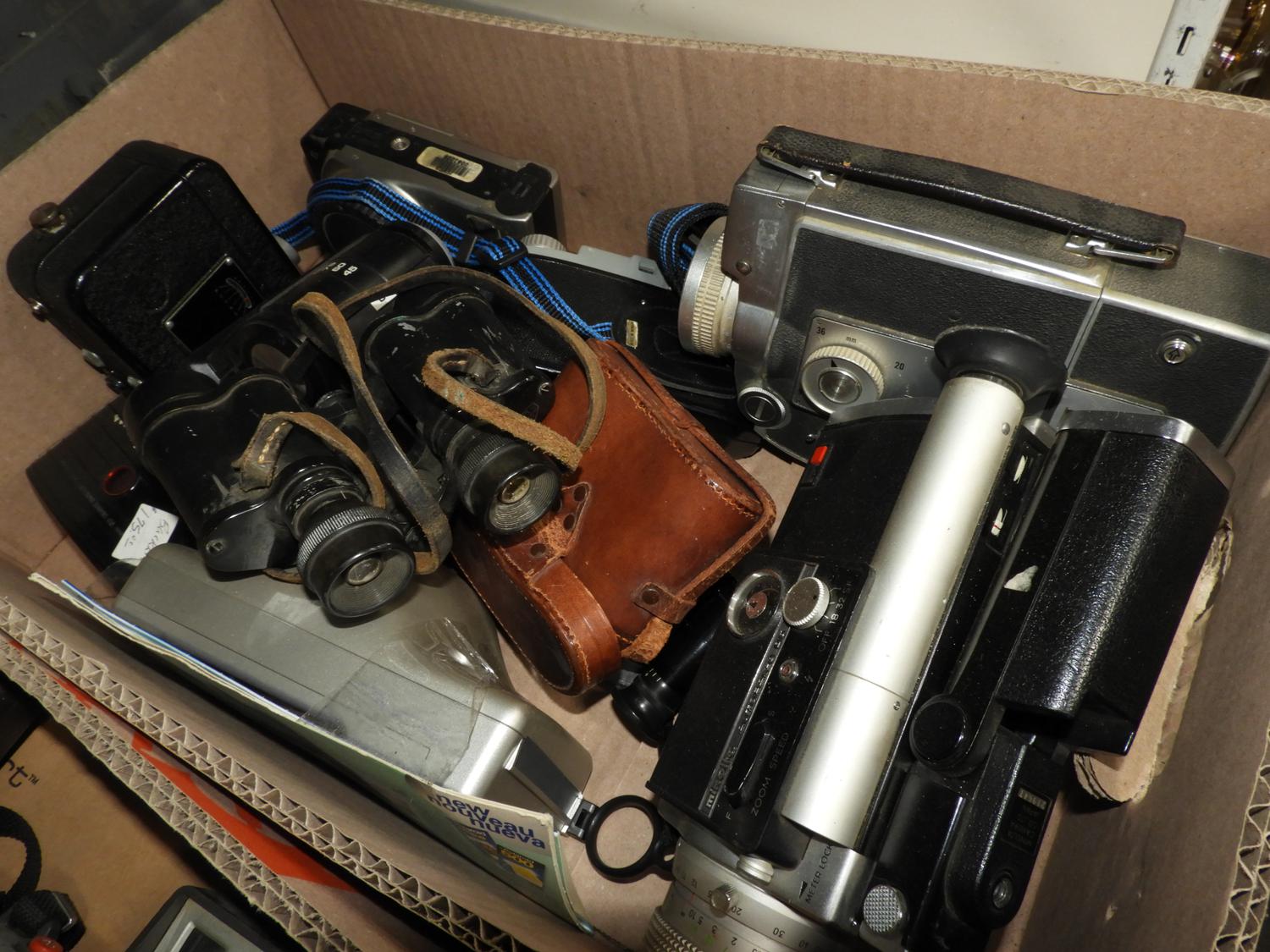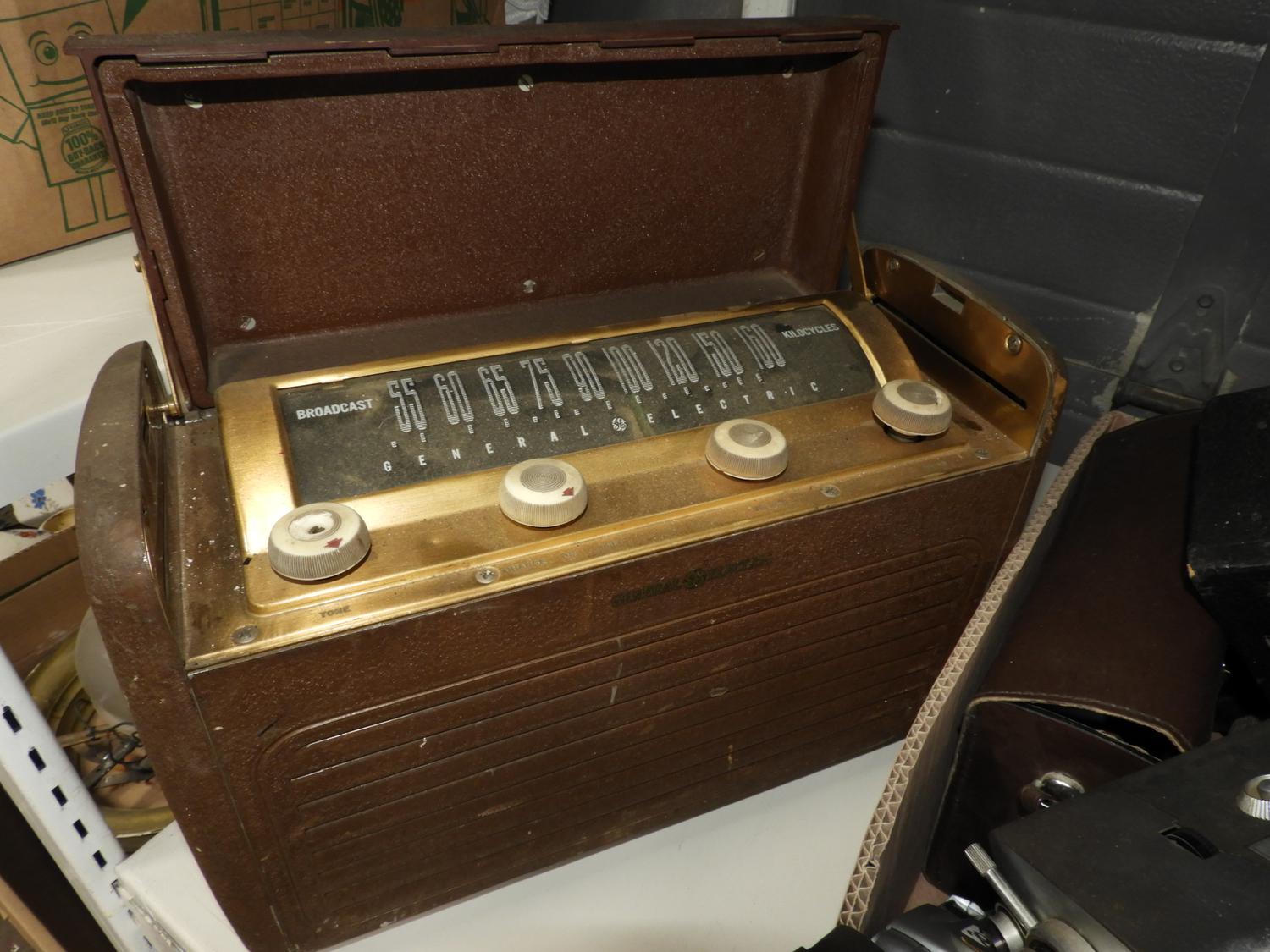 lot of vintage cameras and a radio