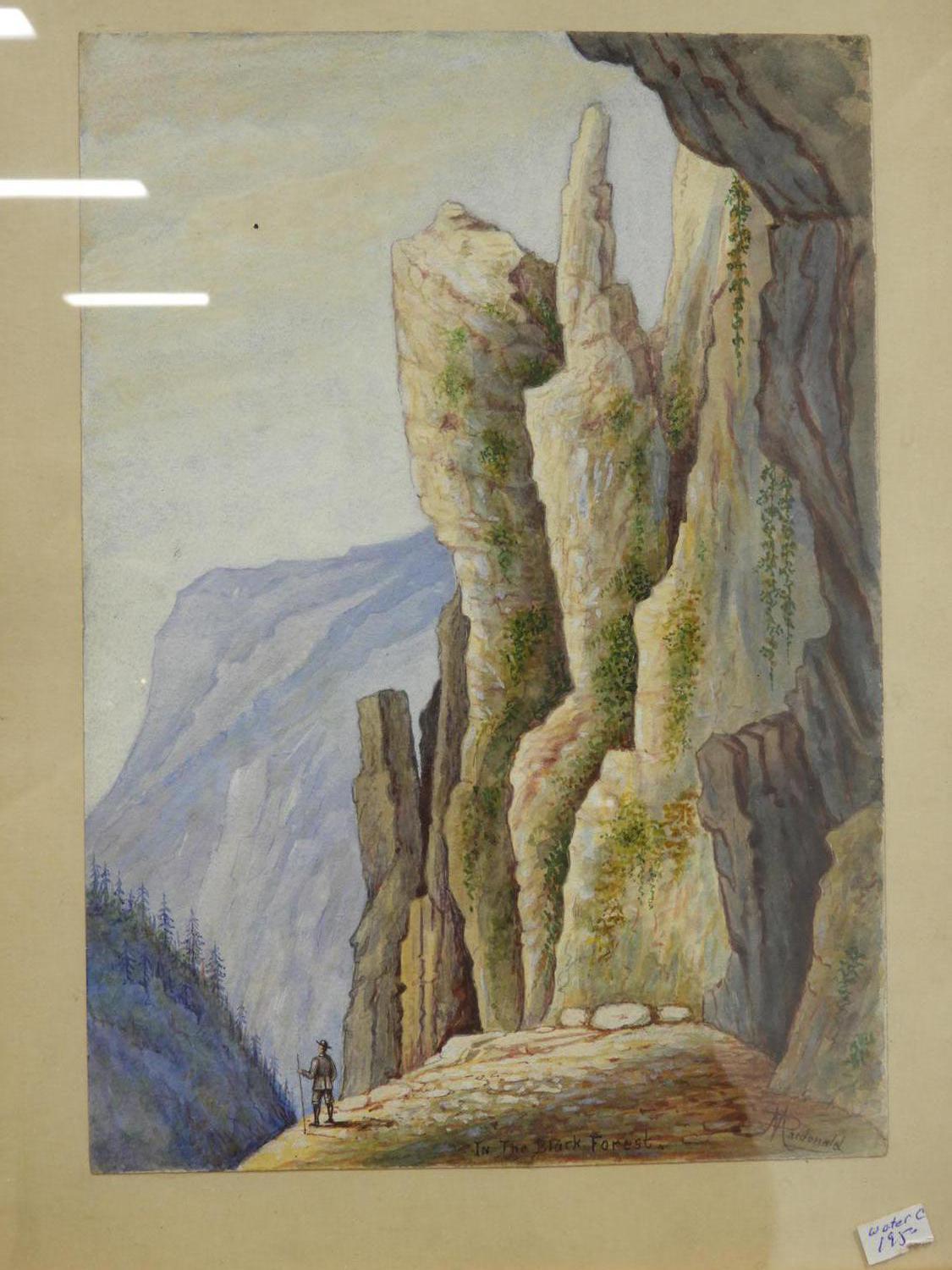 d. macdonald, two watercolours, 10" x 7" and smaller, "in the black forest" & "doaking, surrey"