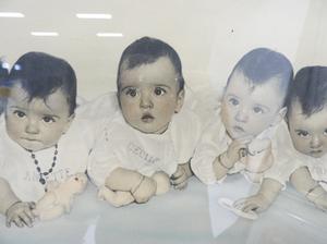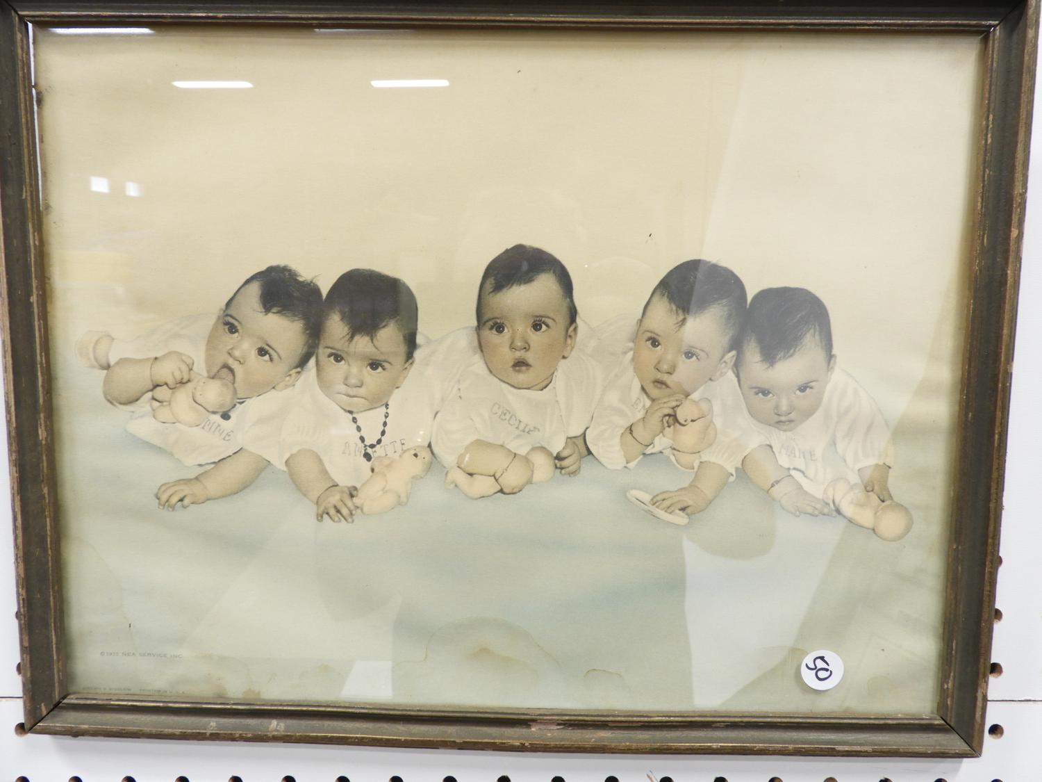 framed colour photograph of the dionne quintuplets, 12" x 15"