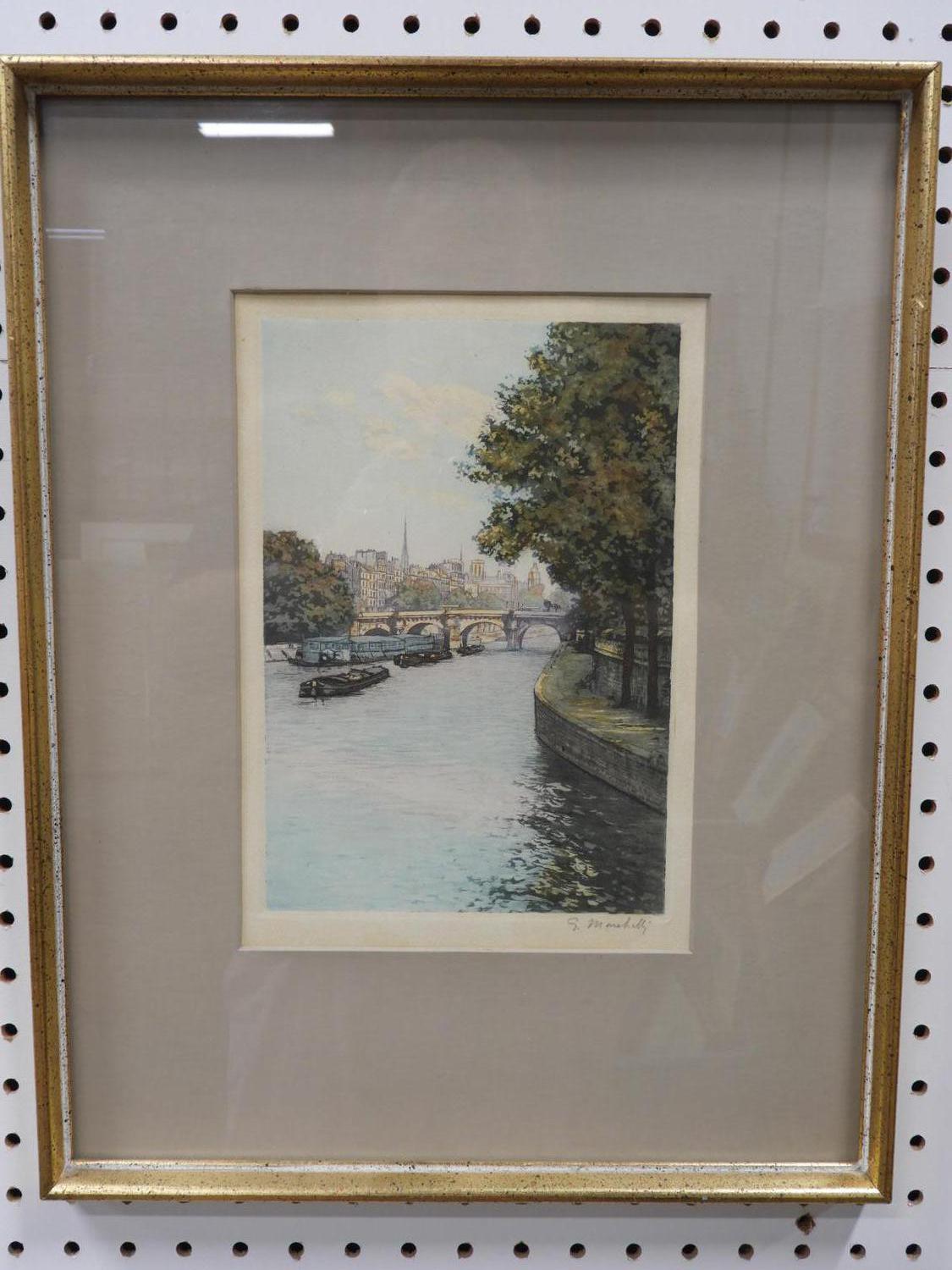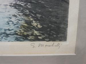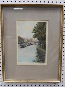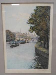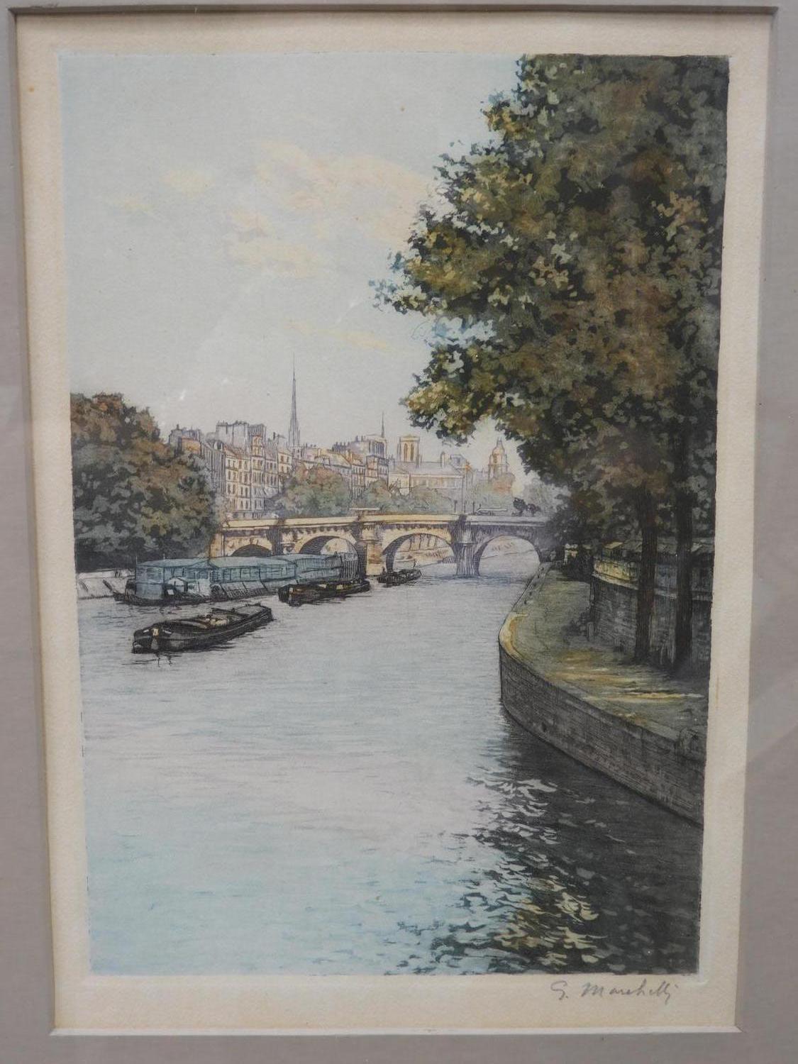 g. marchelli, etching in colours, 11" x 7 1/2", "canal scene"
