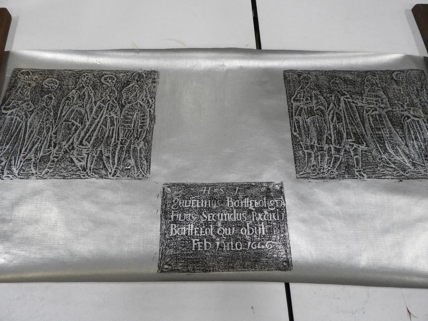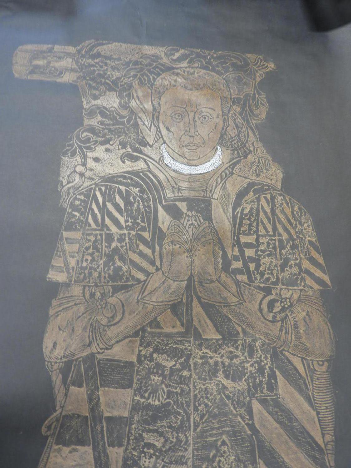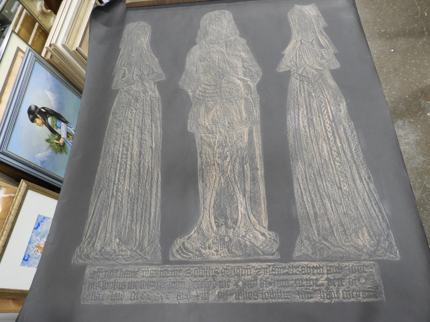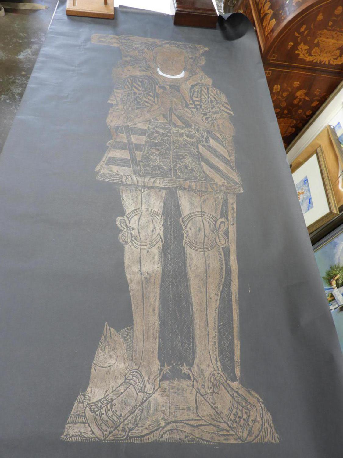 four unframed brass rubbings, 70" x 30" and smaller