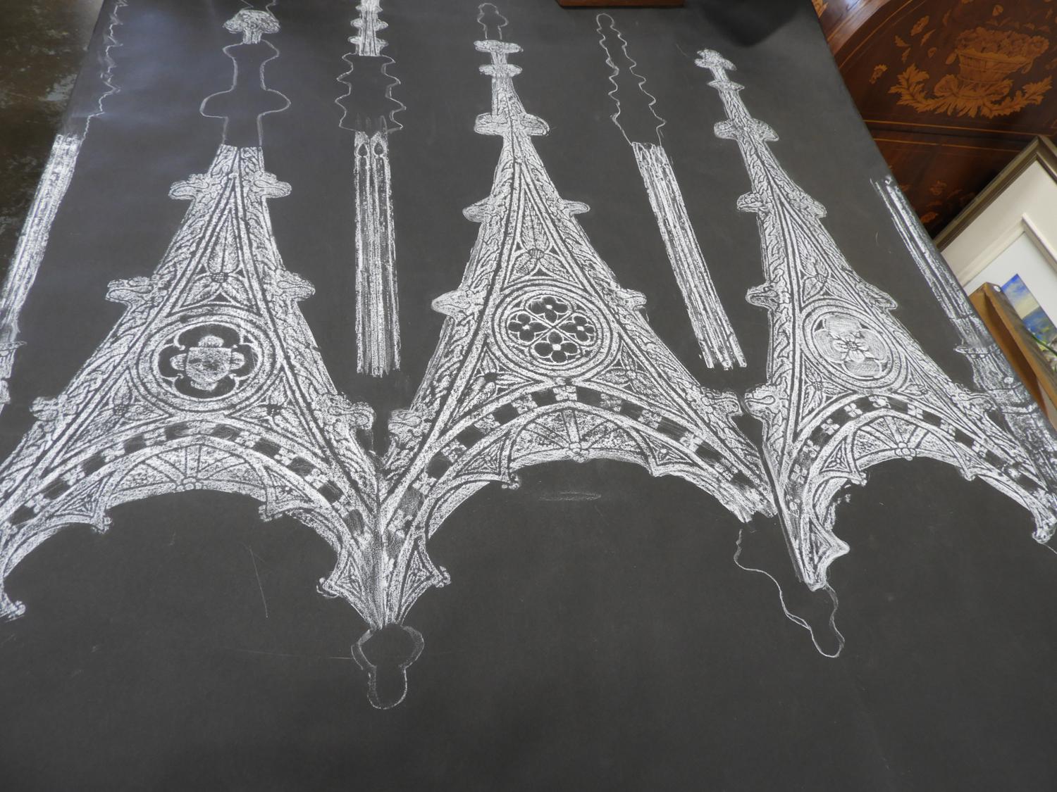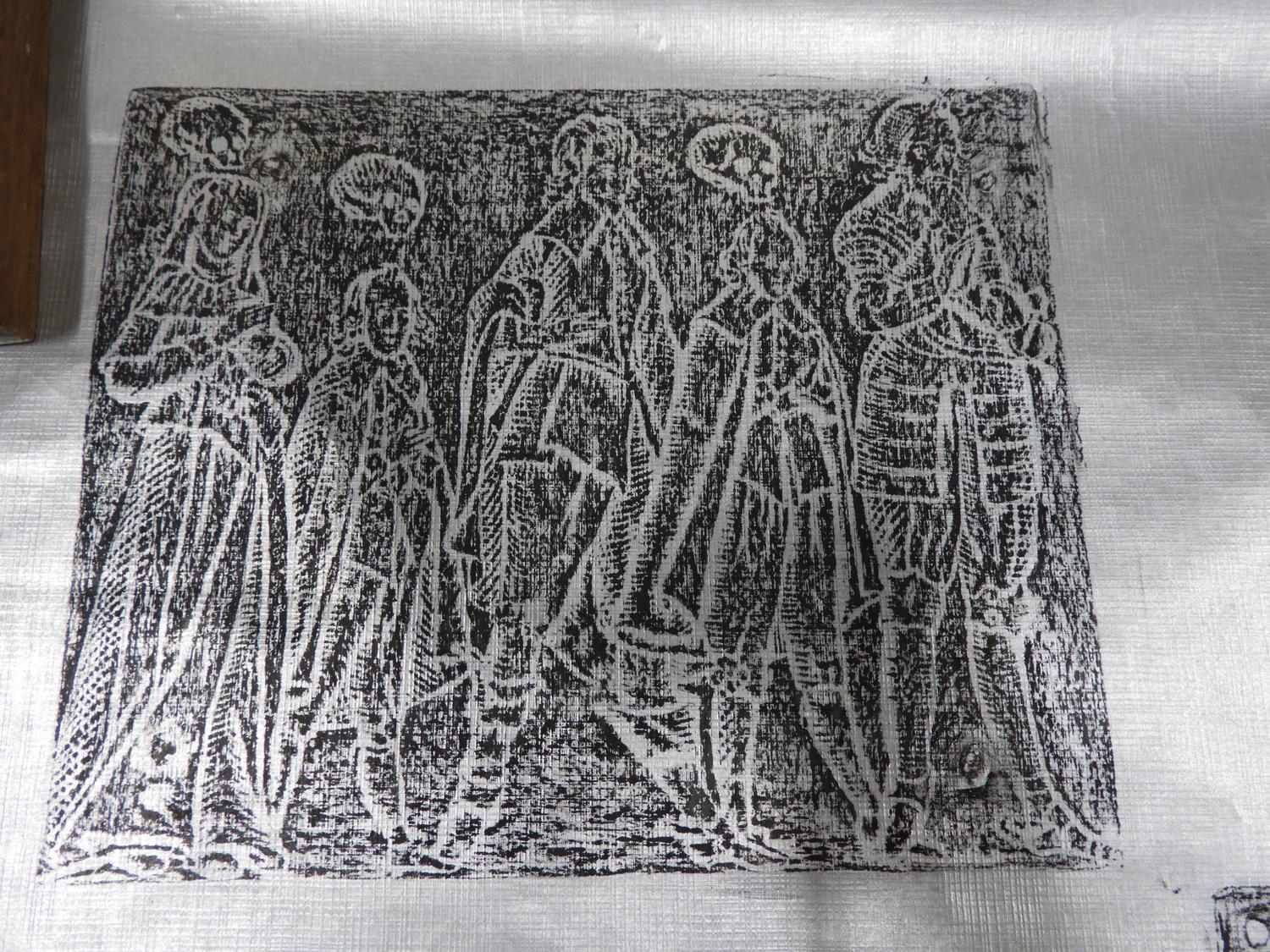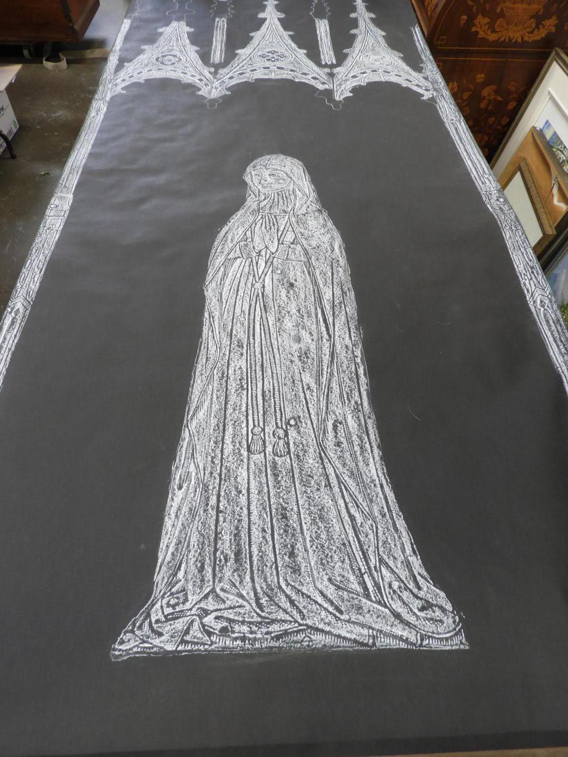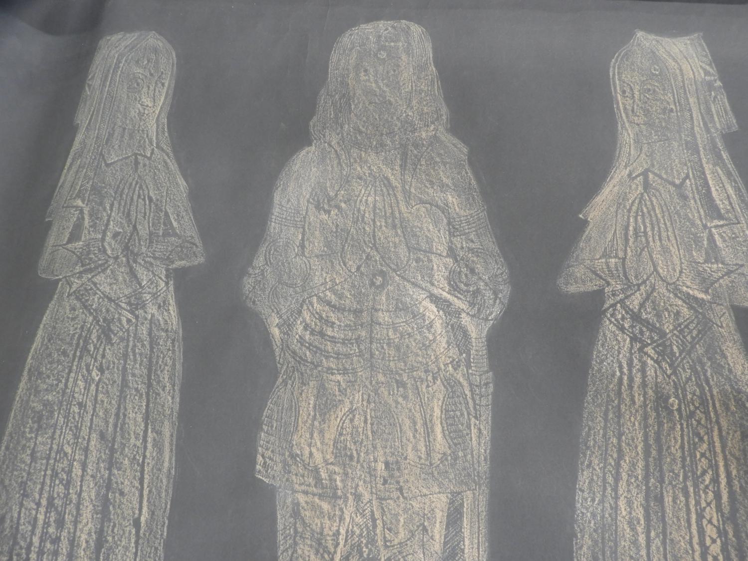 four unframed brass rubbings, 70" x 30" and smaller