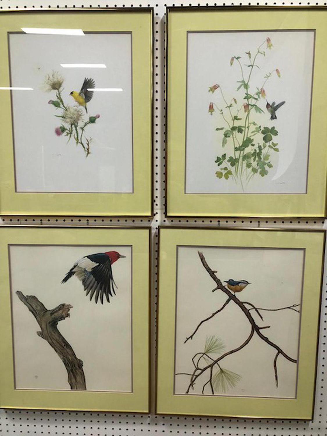 glen loates, two prints, 18" x 16", "birds" with two other similar bird prints