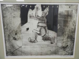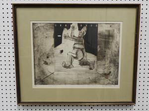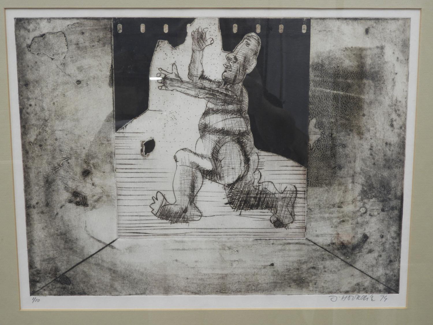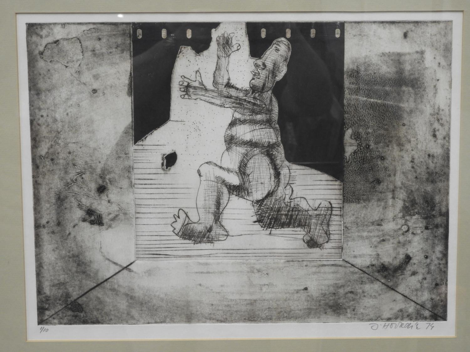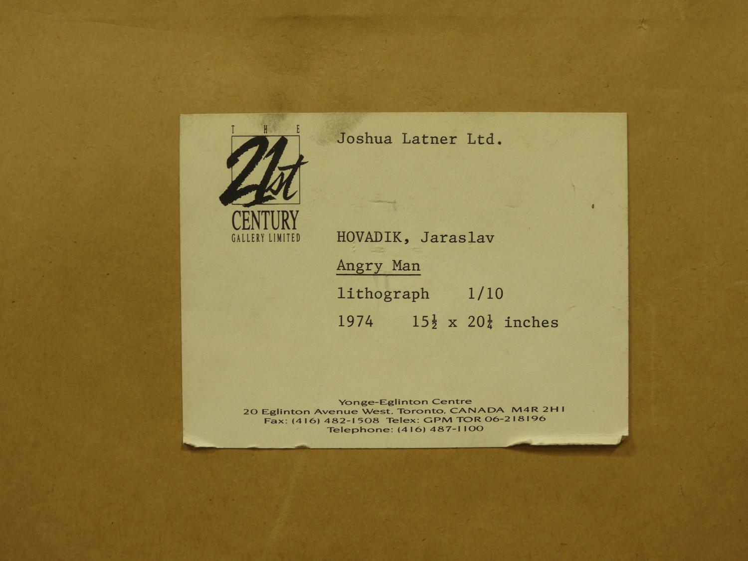 jaroslav hovadik (1935-2001), d.1974, etching in colours, 1/10, 15" x 20", "angry man"