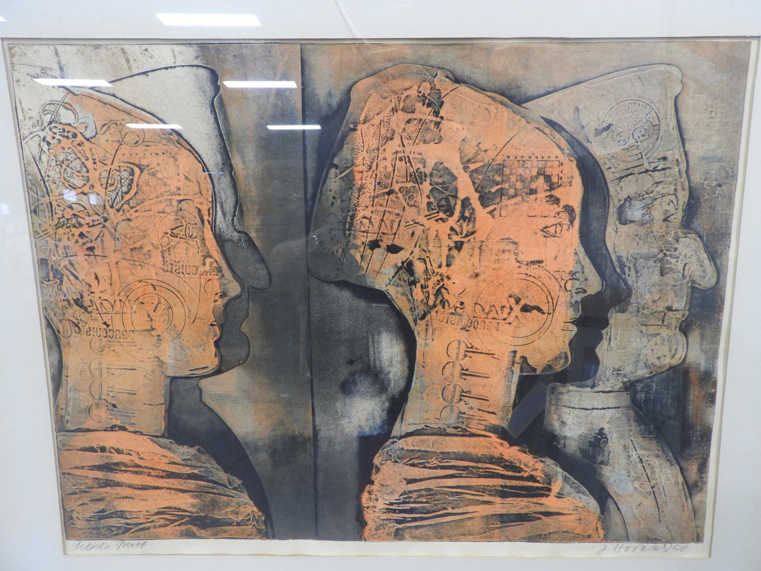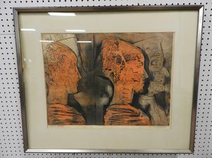 jaroslav hovadik (1935-2011), d.1968, artist proof etching in colours, 18" x 24", "untitled - profiles"