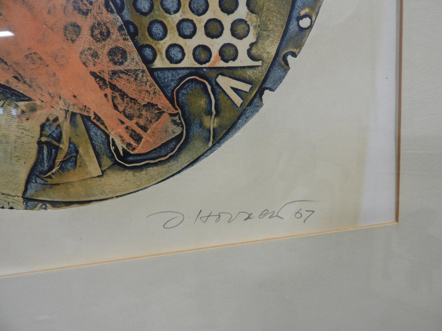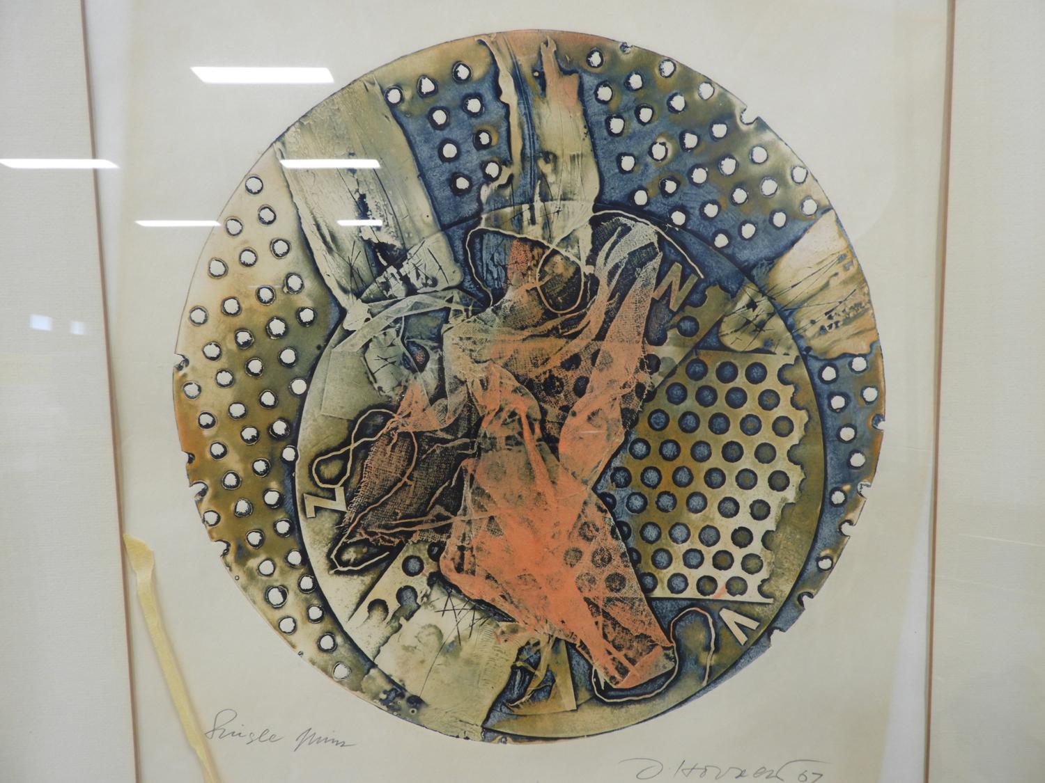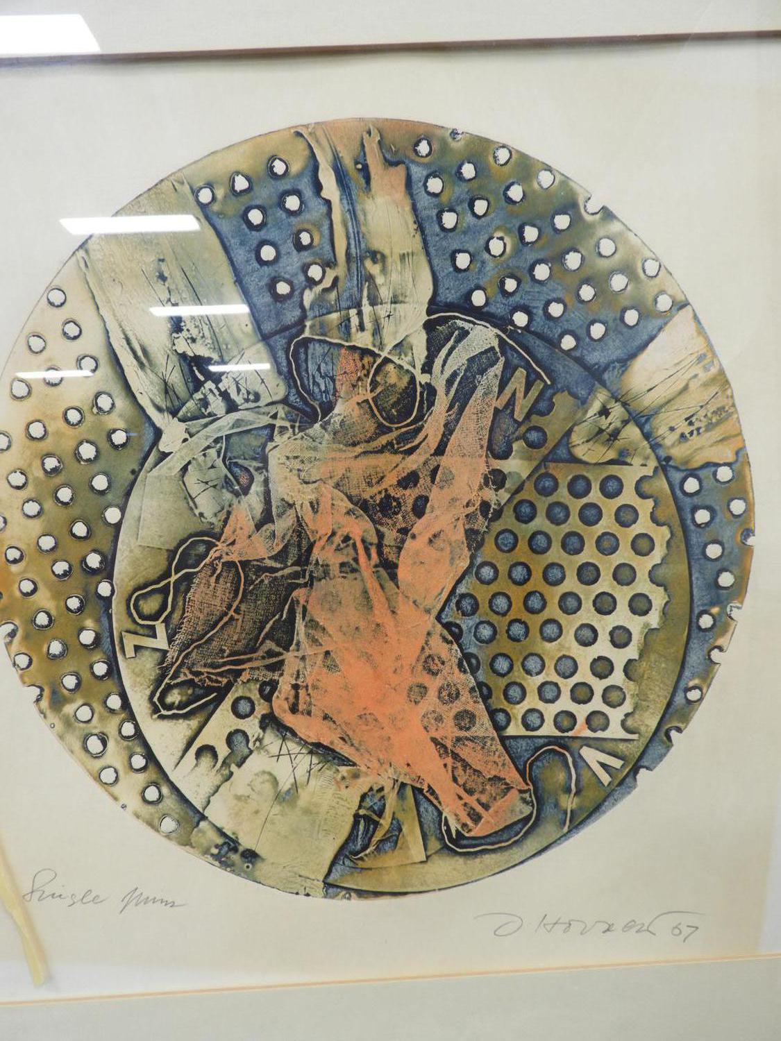 jaroslav hovadik (1935-2011), d.1967, etching in colours, dia. 13", "abstract"