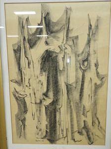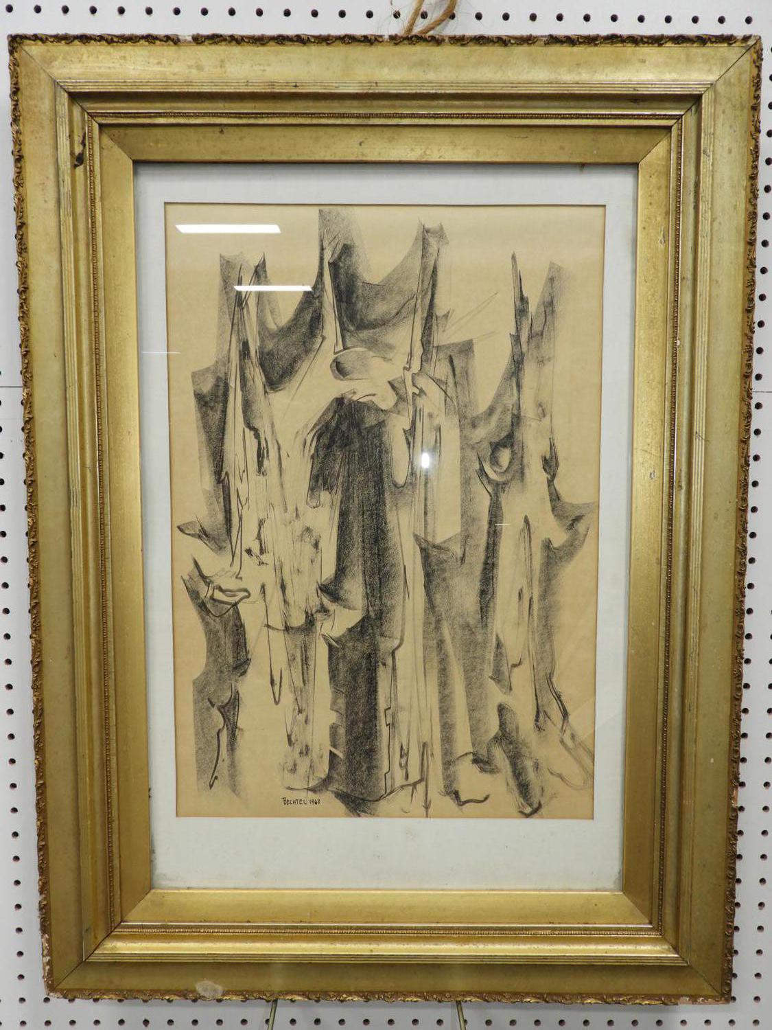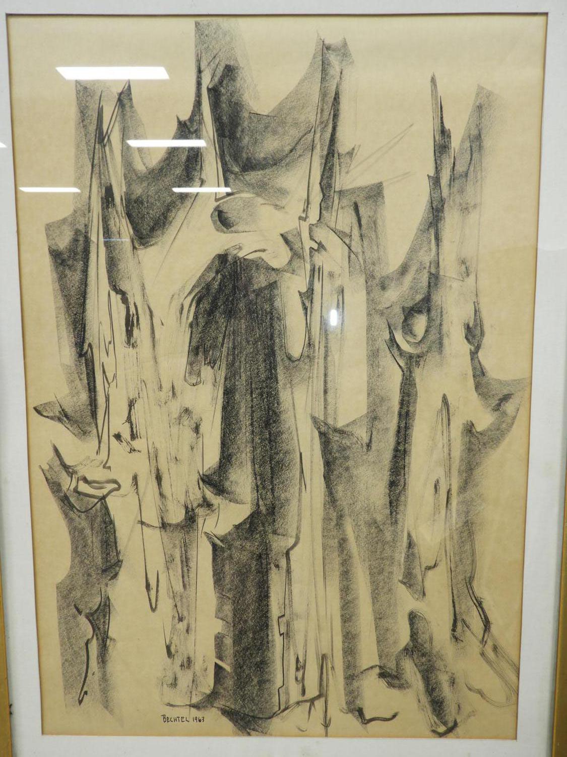 bechtel, d.1963, mixed media, 23" x 16", "abstract"