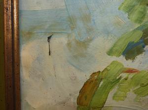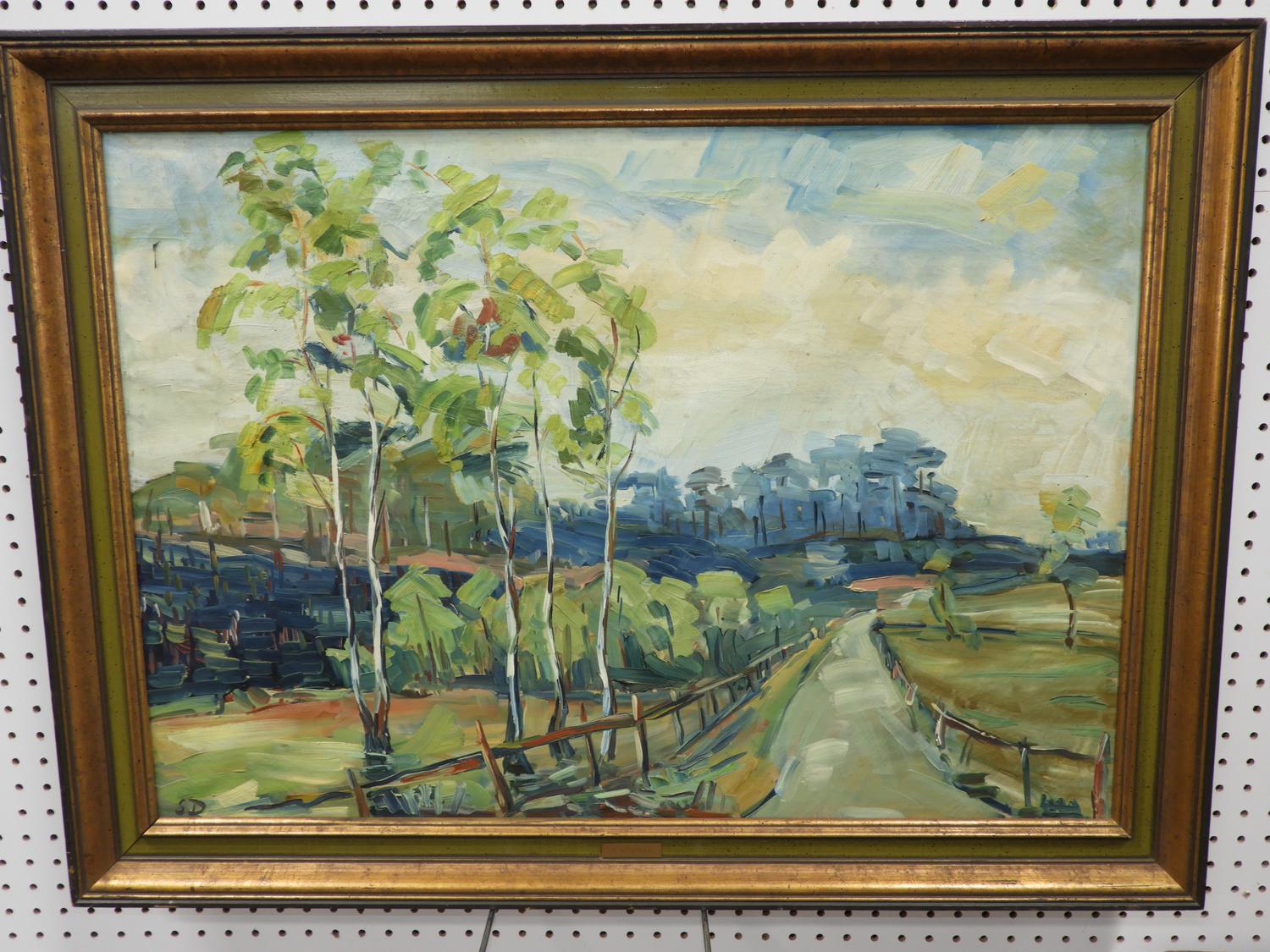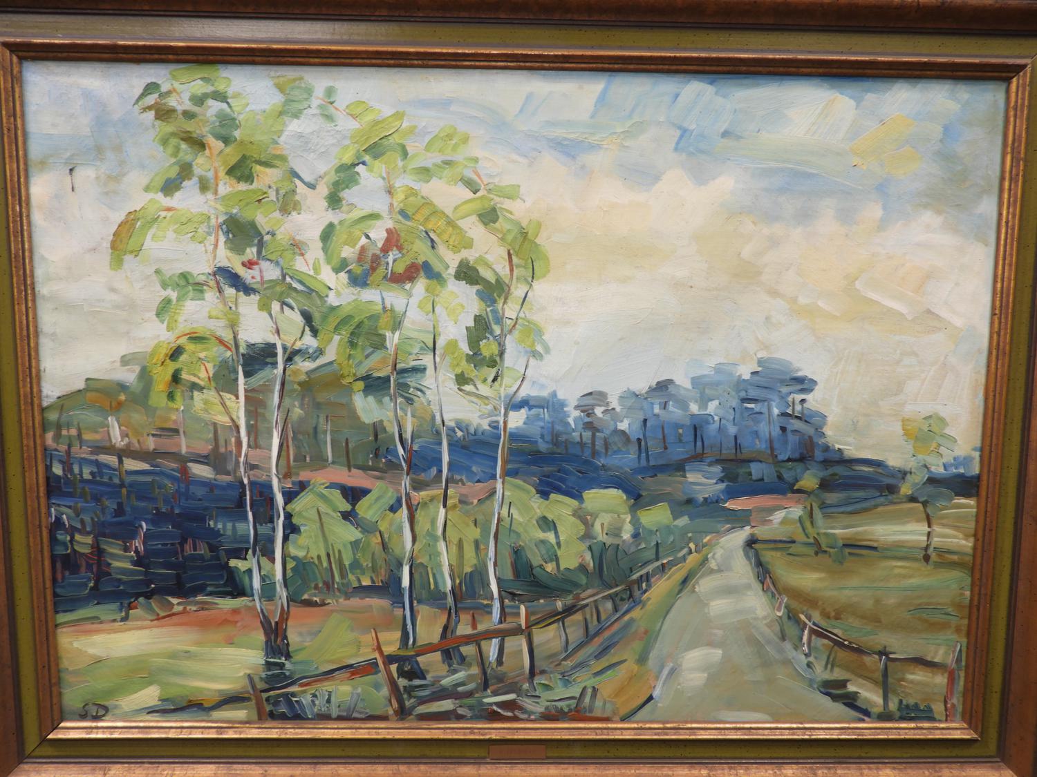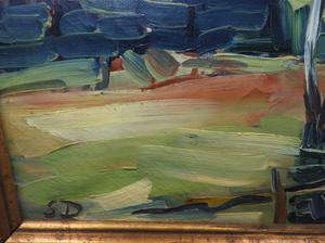 attributed to stenislaw downar (b.1920), oil on canvas, 23" x 32", "landscape"