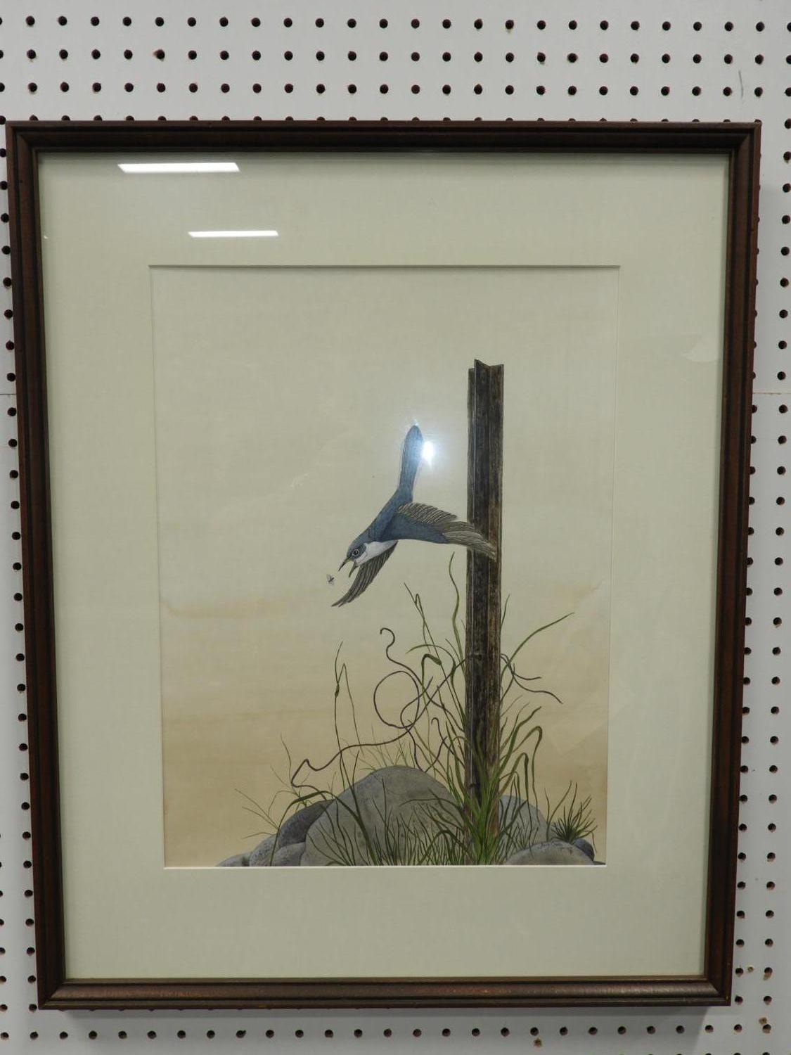 david charles grainger, watercolour, 19" x 14", "blue grey nat catcher"