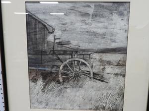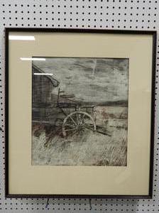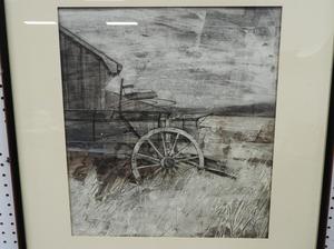 unidentified, watercolour, 18" x 16", "horse cart - farm landscape"