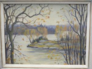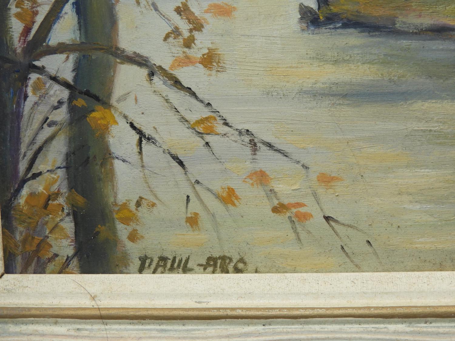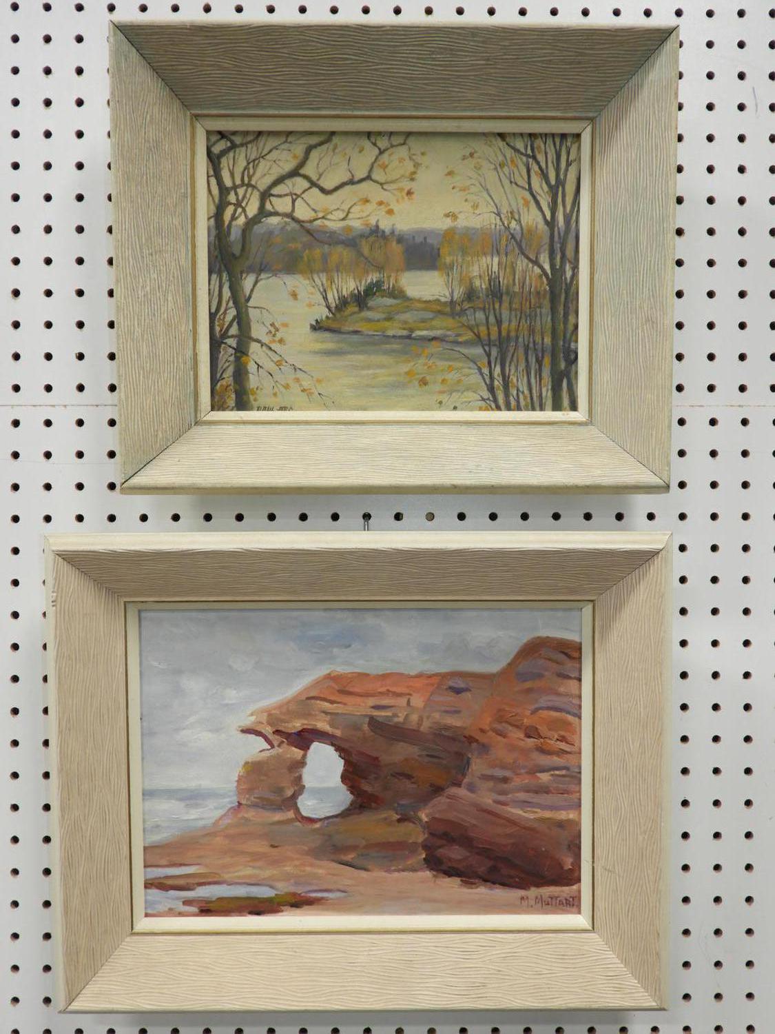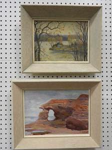 two oil on boards, 9" x 13", "sea scape" & "landscape with lake"