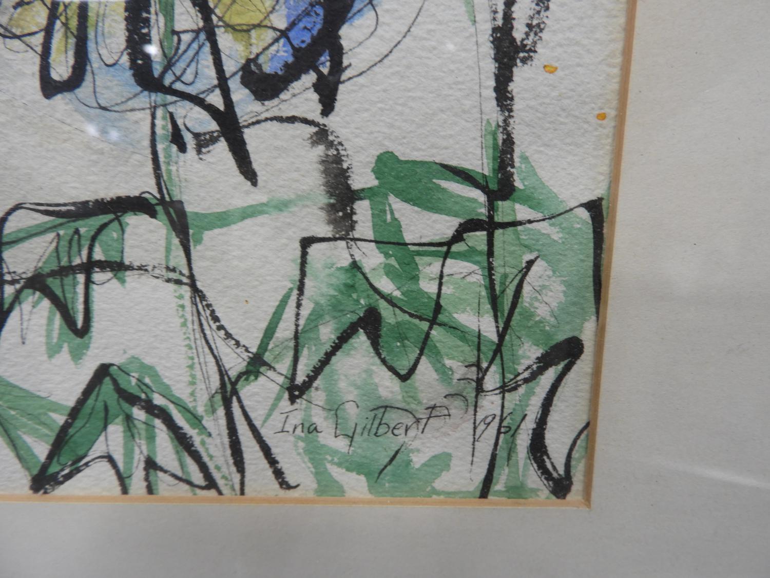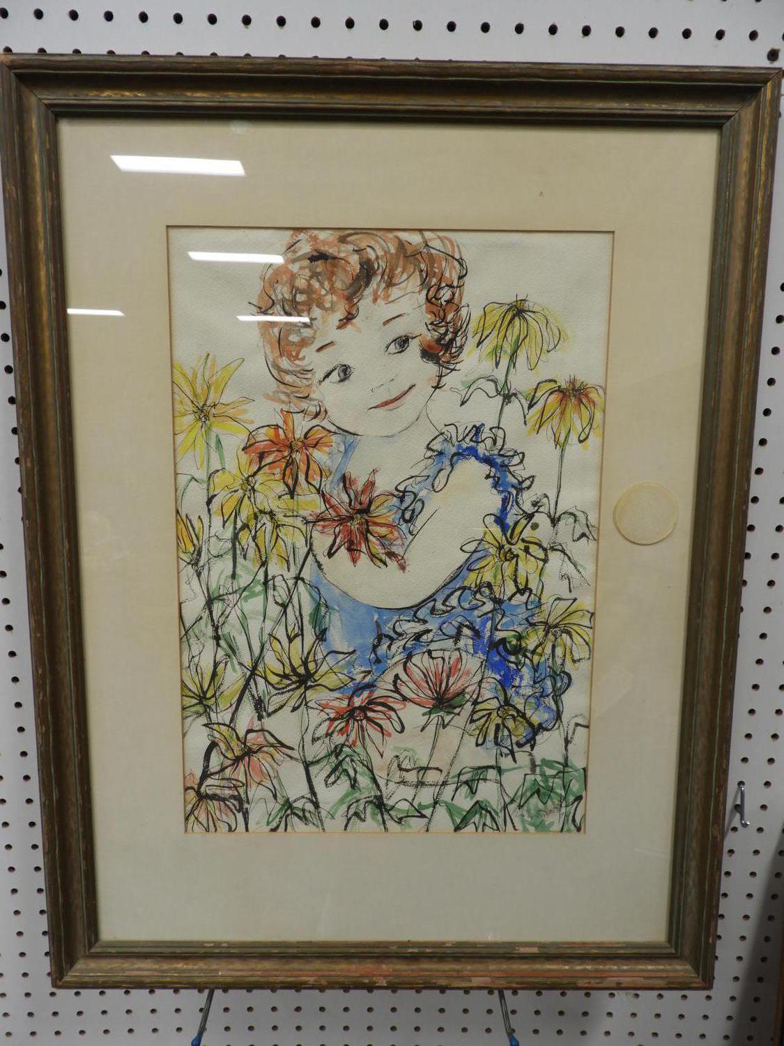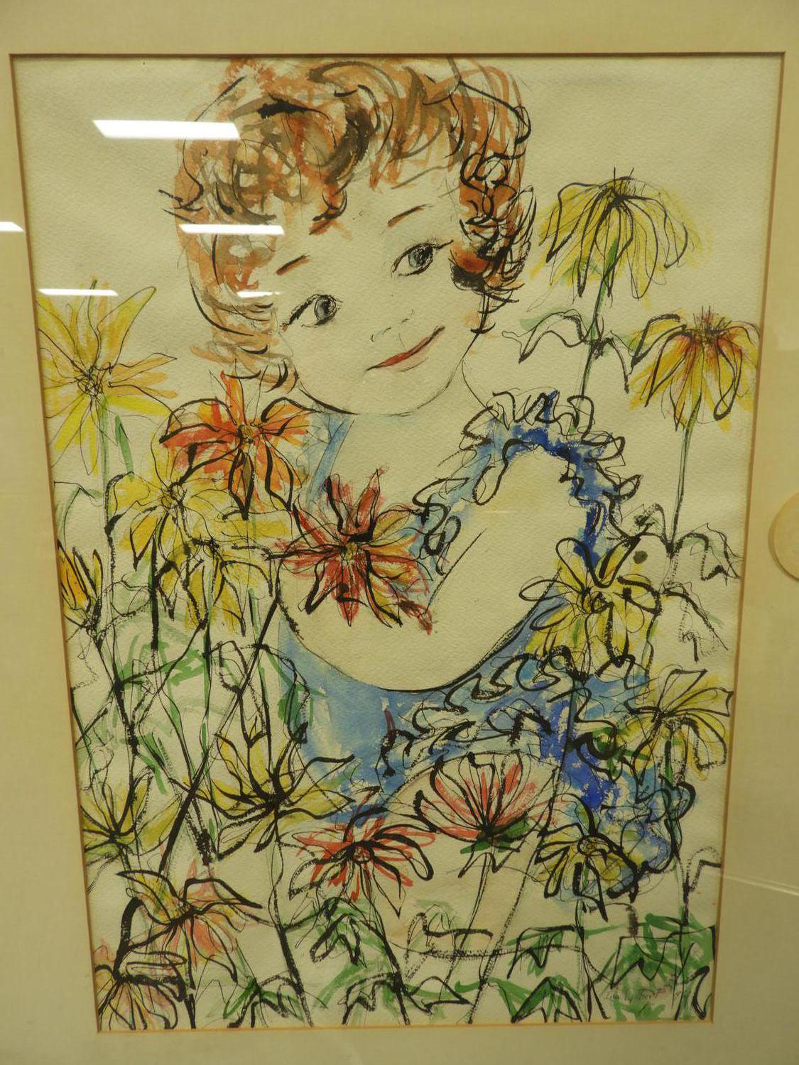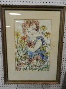 ina gilbert, d.1961, watercolour, 19 1/2" x 13 1/2", "young girl surrounded by flowers"