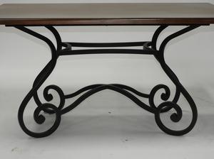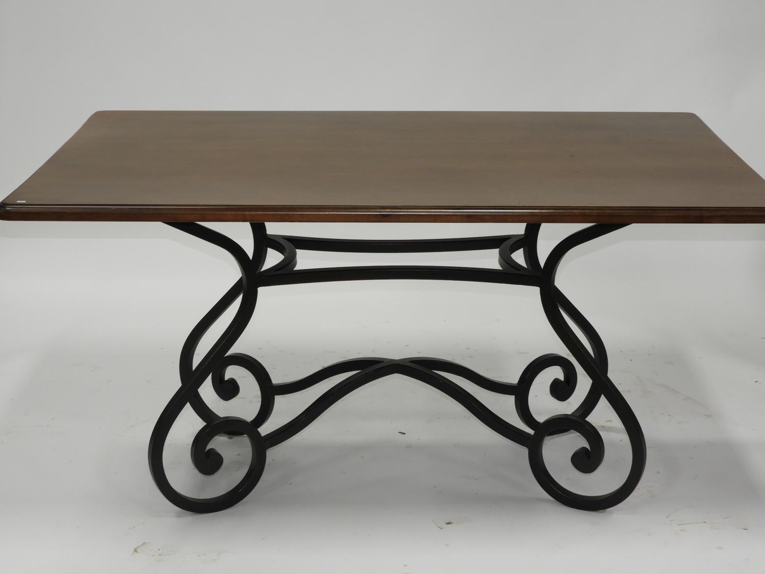 spanish style metal base dining table, late 20th century, 30 1/2" x 60" x 38"
