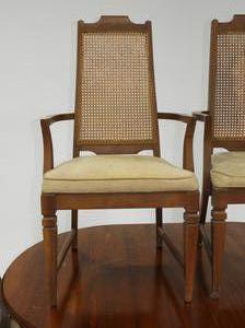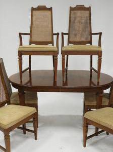 gibbard extending dining table with two leaves and six chairs, 30" x 61" x 41", pair of 16" leaves