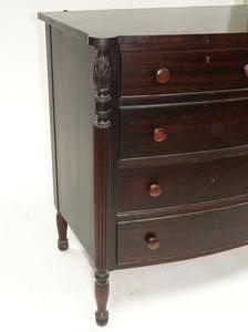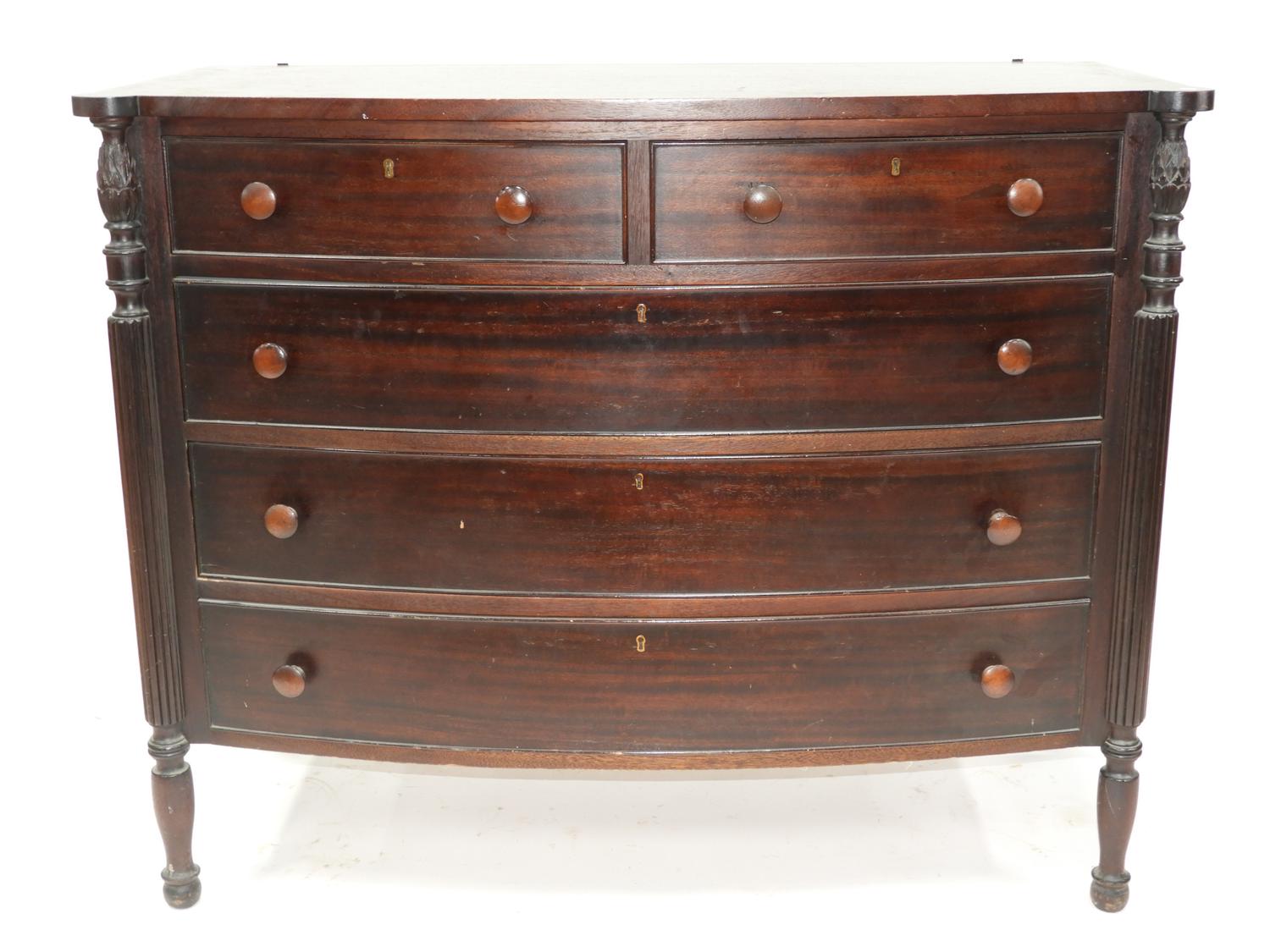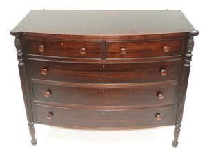 mahogany bow front chest of drawers, c.1920, 37" x 46" x 22 1/4"