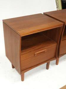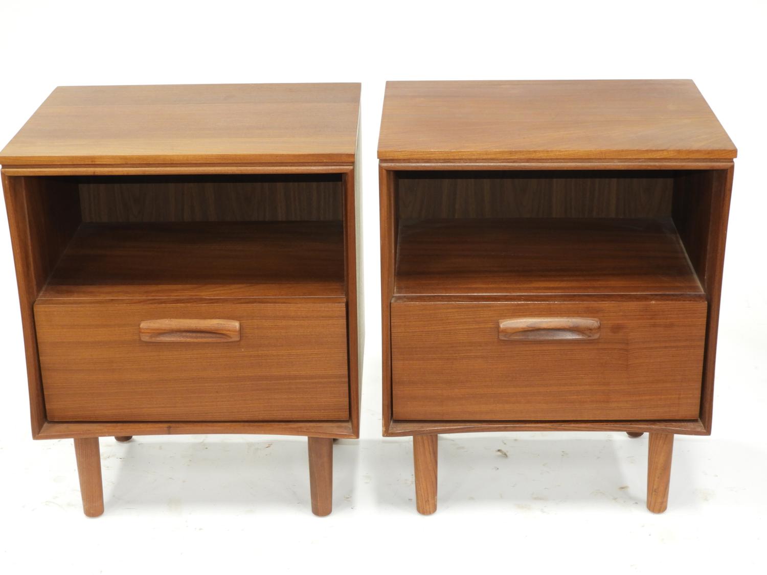 pair of mid century teak side tables by imperial, 25 1/2" x 20" x 15"