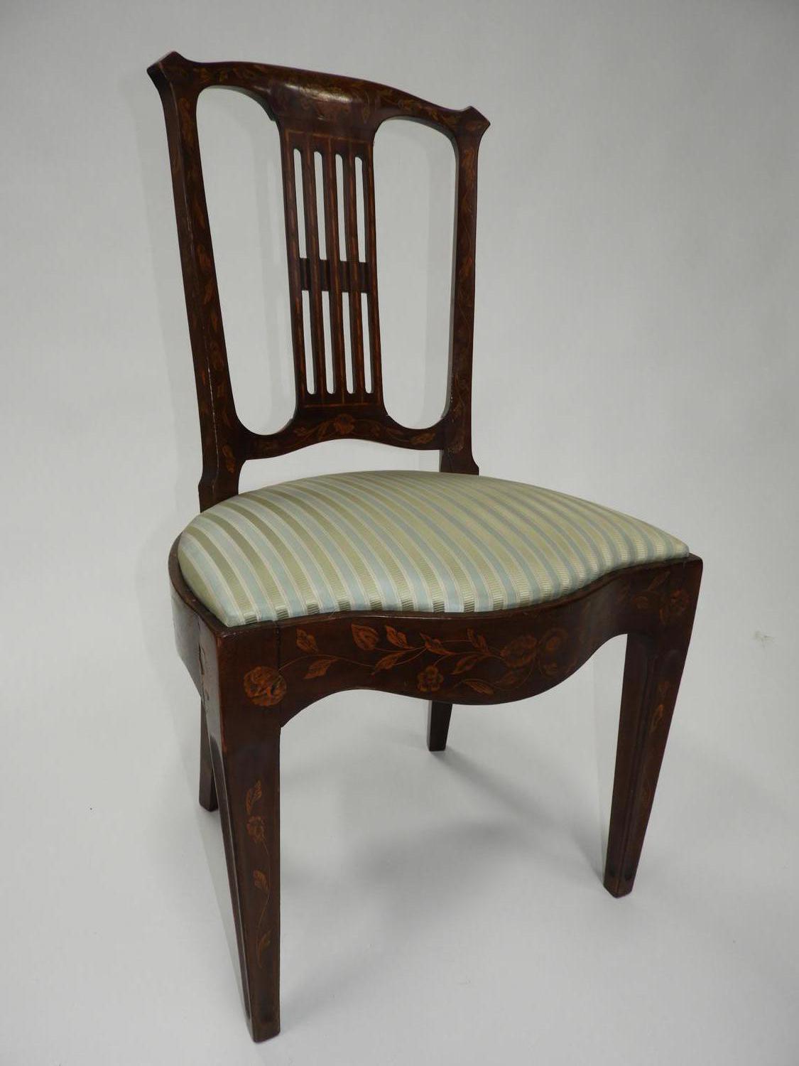 sheraton style marquetry inlaid mahogany side chair, early 19th century, 36 1/2" x 20"