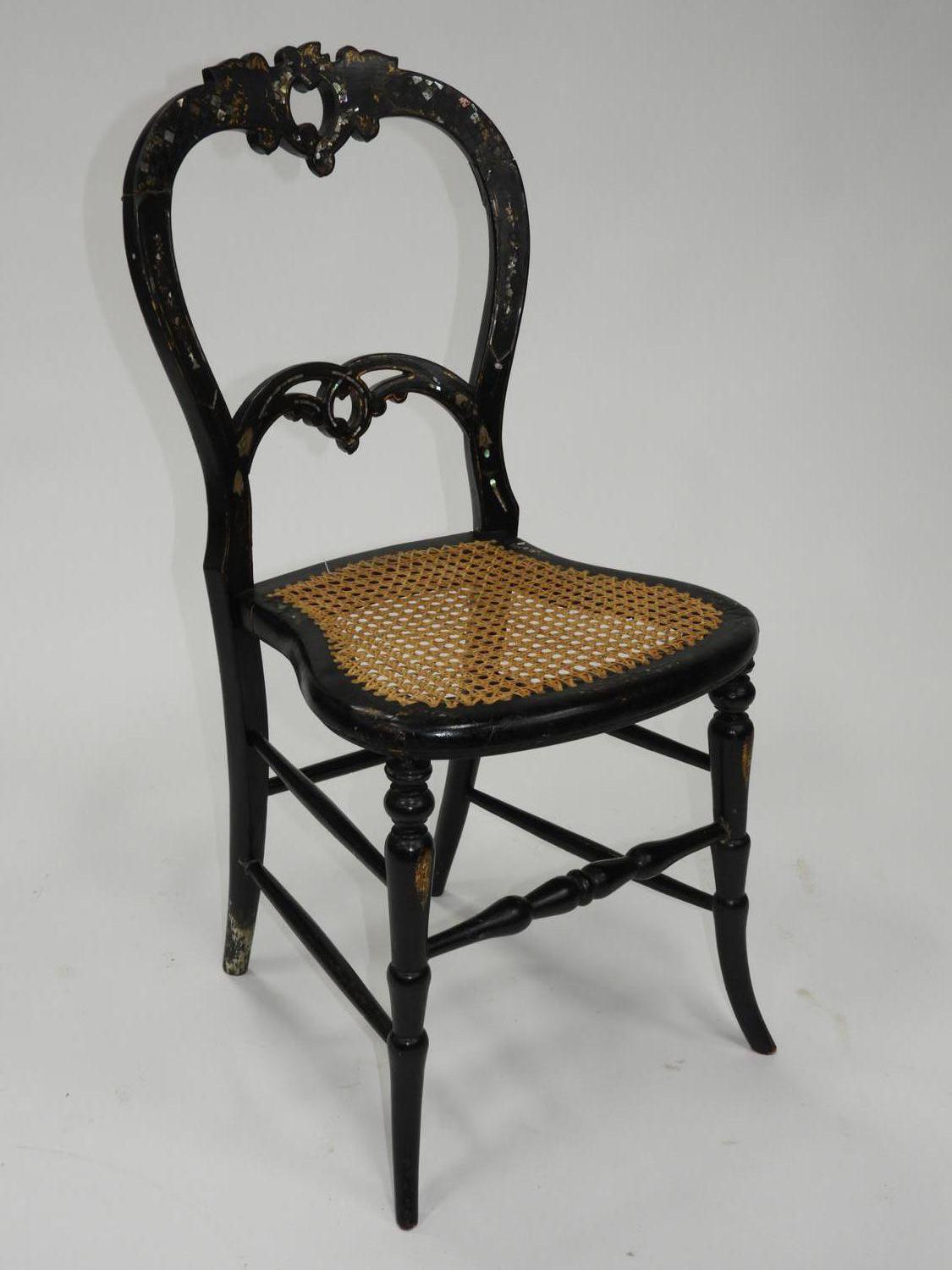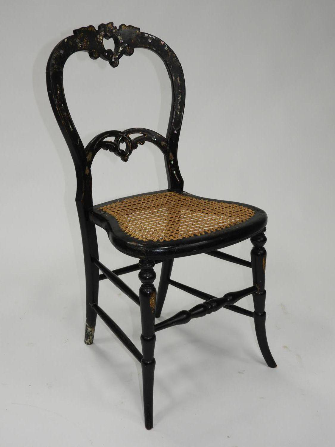 19th century mother-of-pearl inlaid parcel gilt side chair