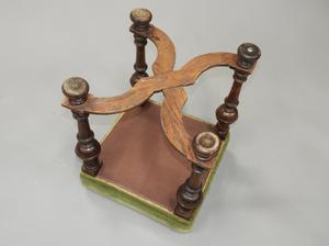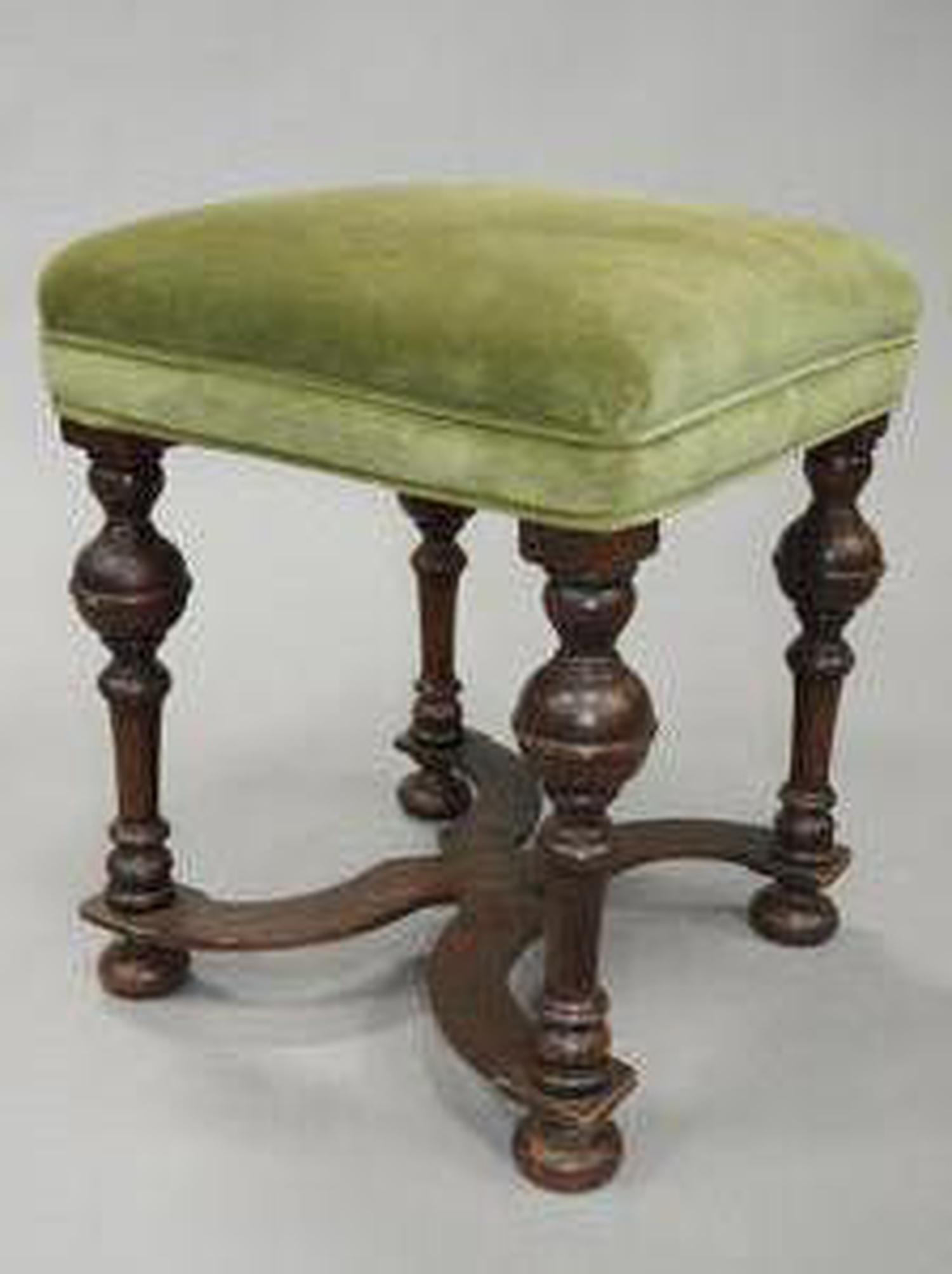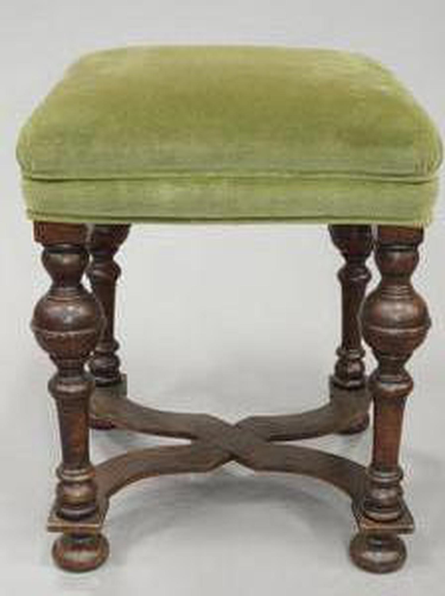 william and mary style oak stool with upholstered top, 21" x 17" x 17"