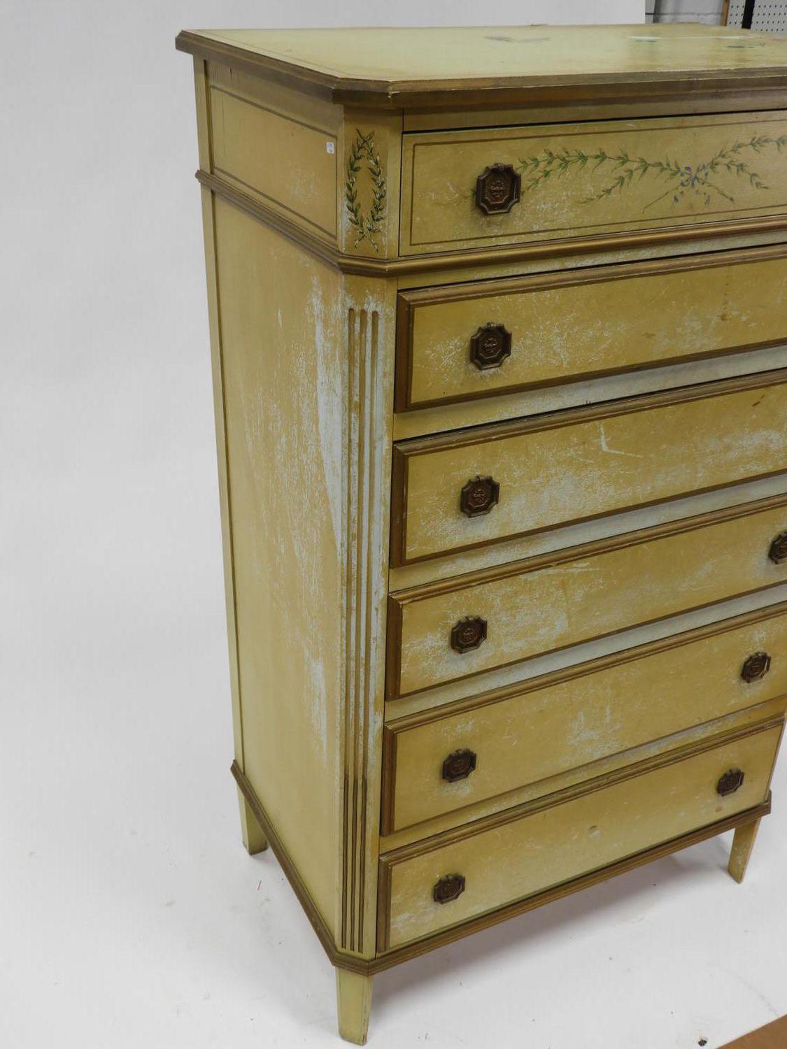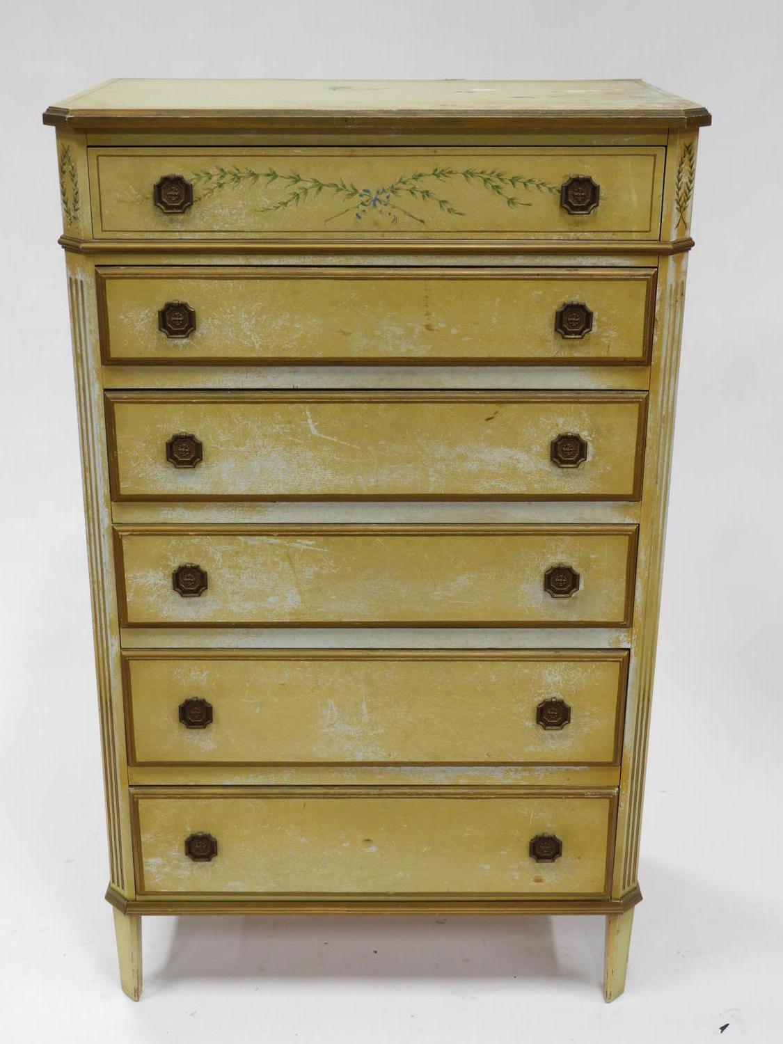 louis xvi-style painted tall chest of drawers, c.1940, 52" x 32" x 20"
