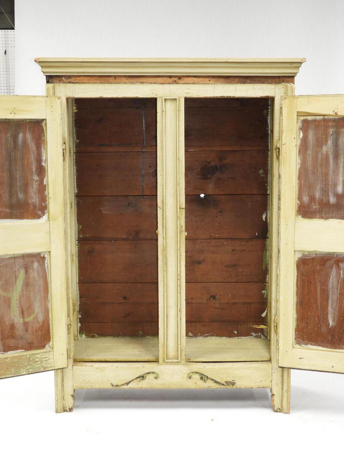 canadian painted pine armoire, early 19th century, 75" x 55" x 20"