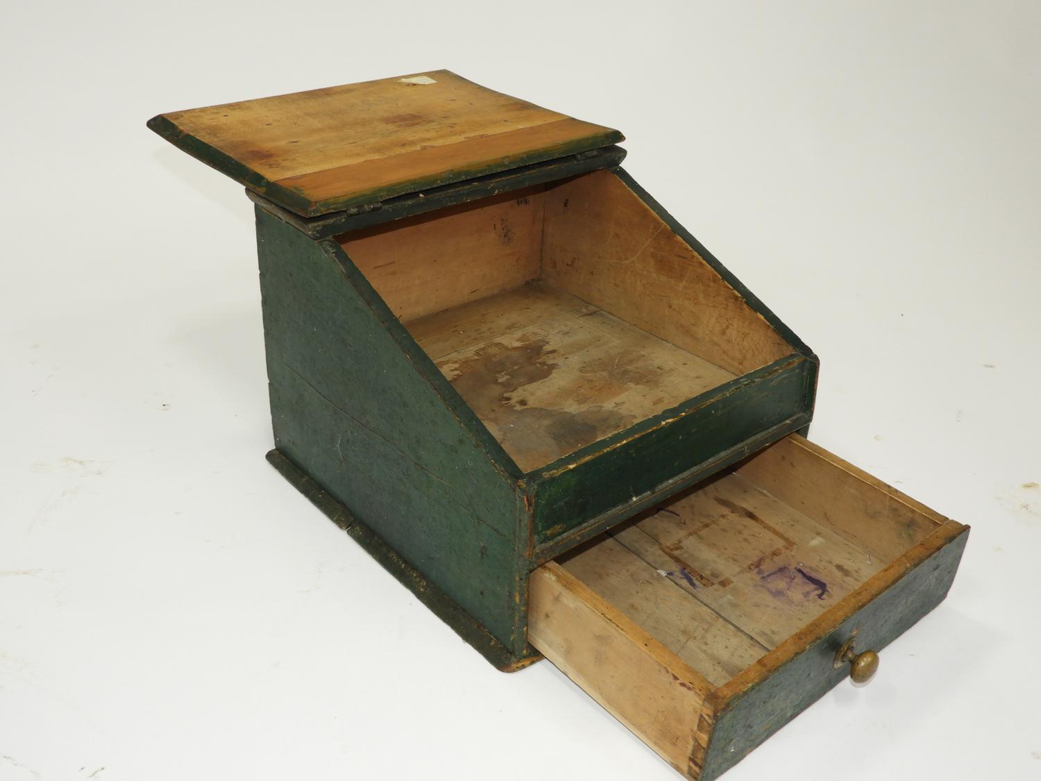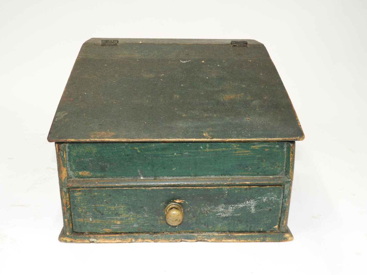 canadian painted pine lap desk, 19th century, 11" x 14 1/2" x 14"