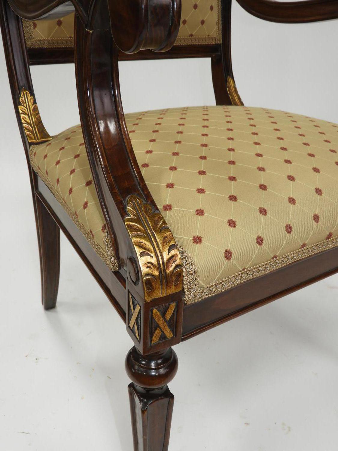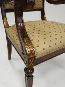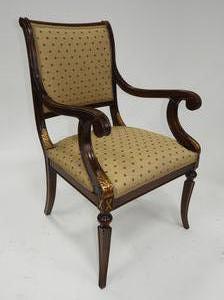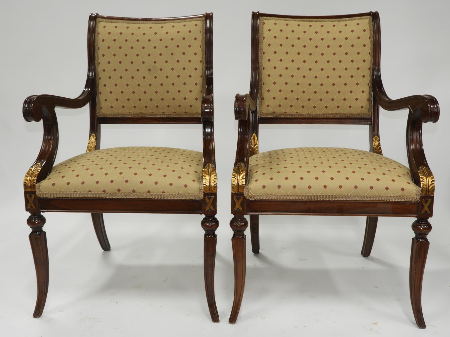 pair of empire style partial gilt mahogany upholstered open armchairs, late 20th century, 40" x 24"
