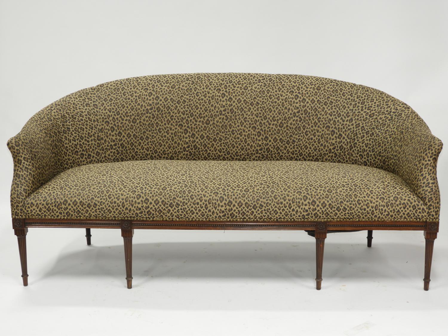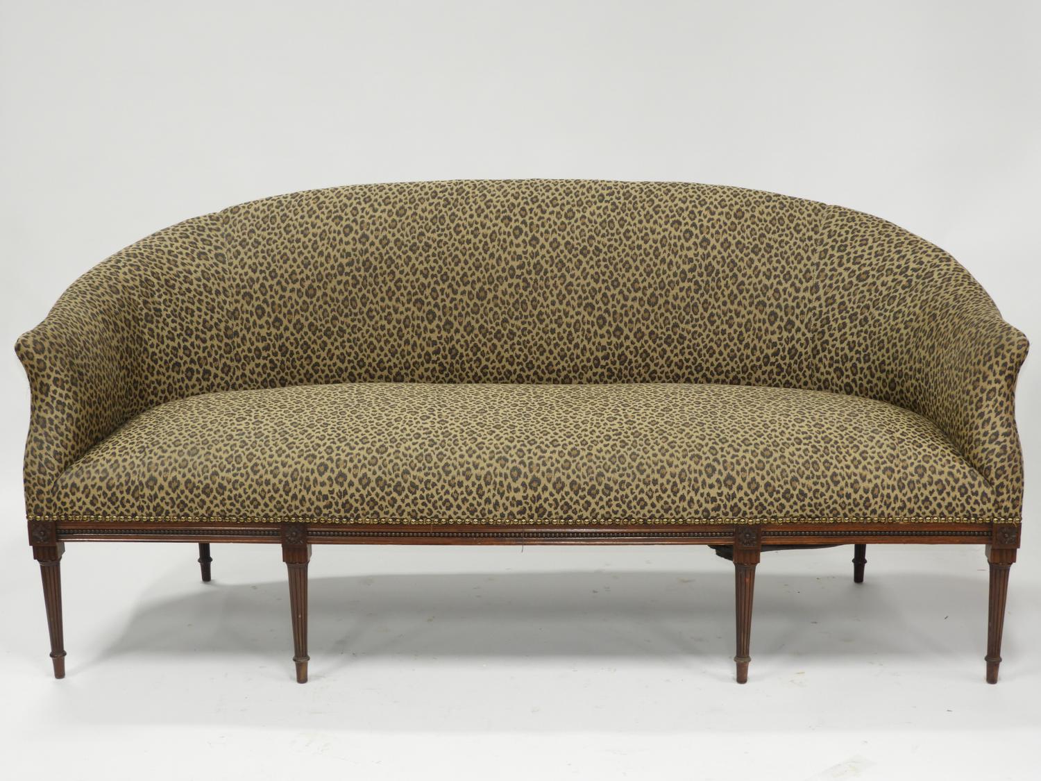 louis xvi-style upholstered settee, mid 20th century, 33" x 74" x 31"