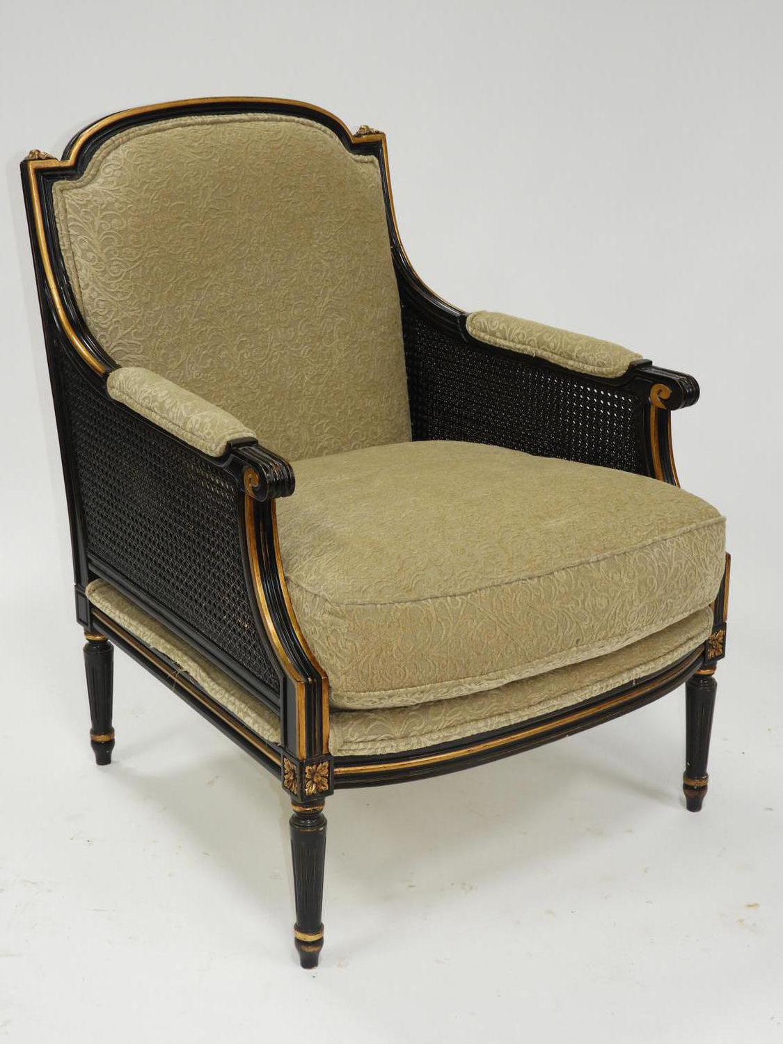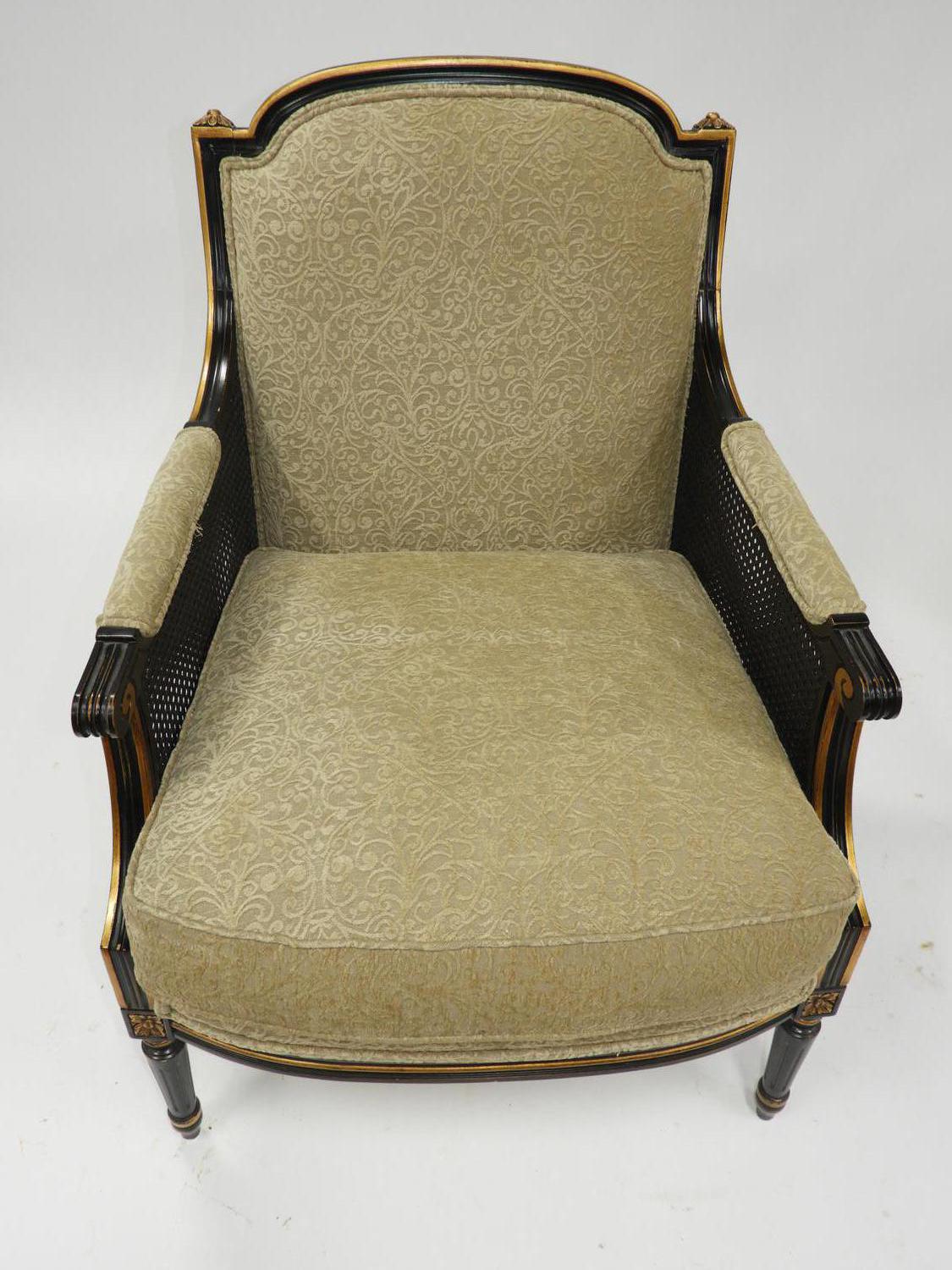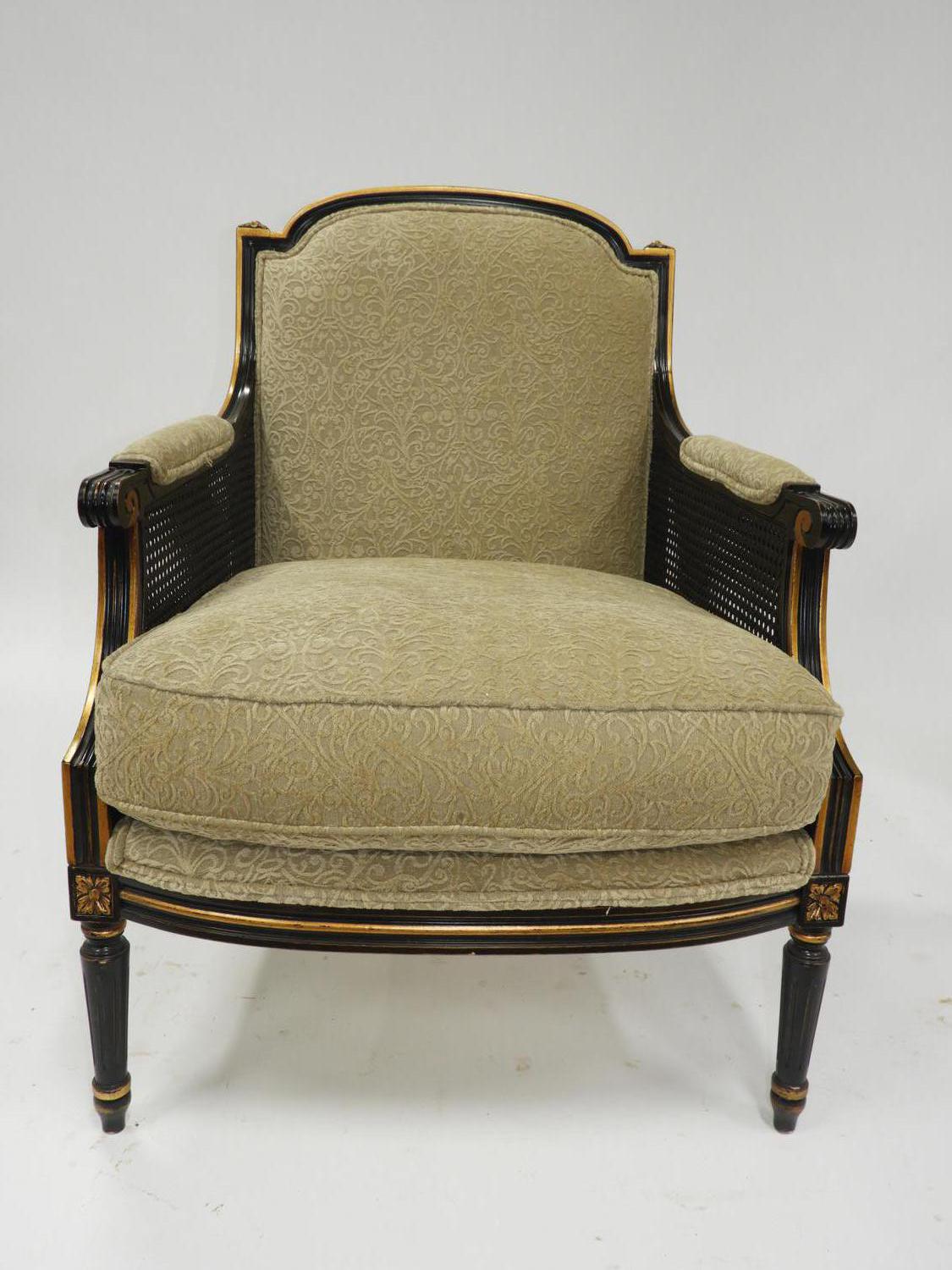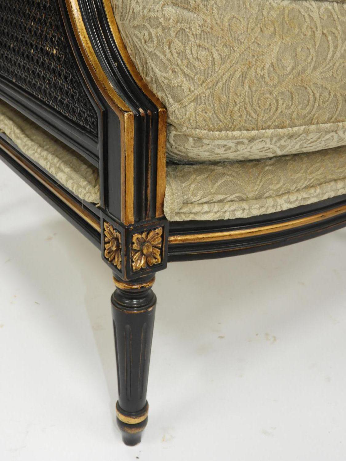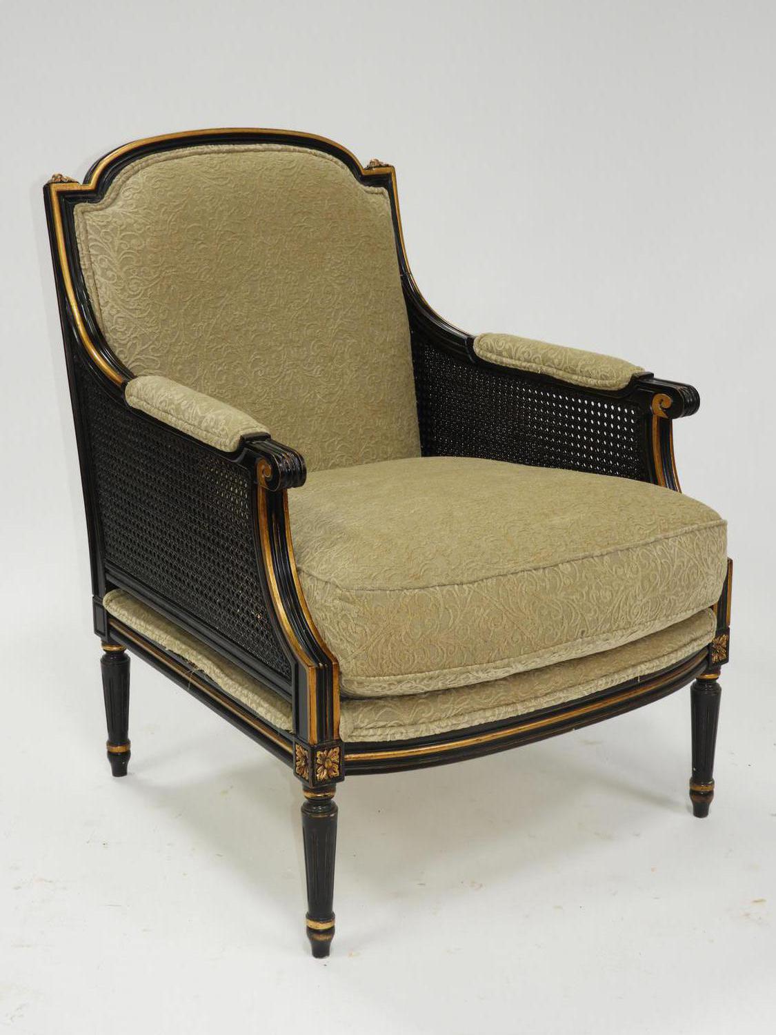 louis xvi-style ebonized partial gilt armchair, 20th century, 36" x 27"