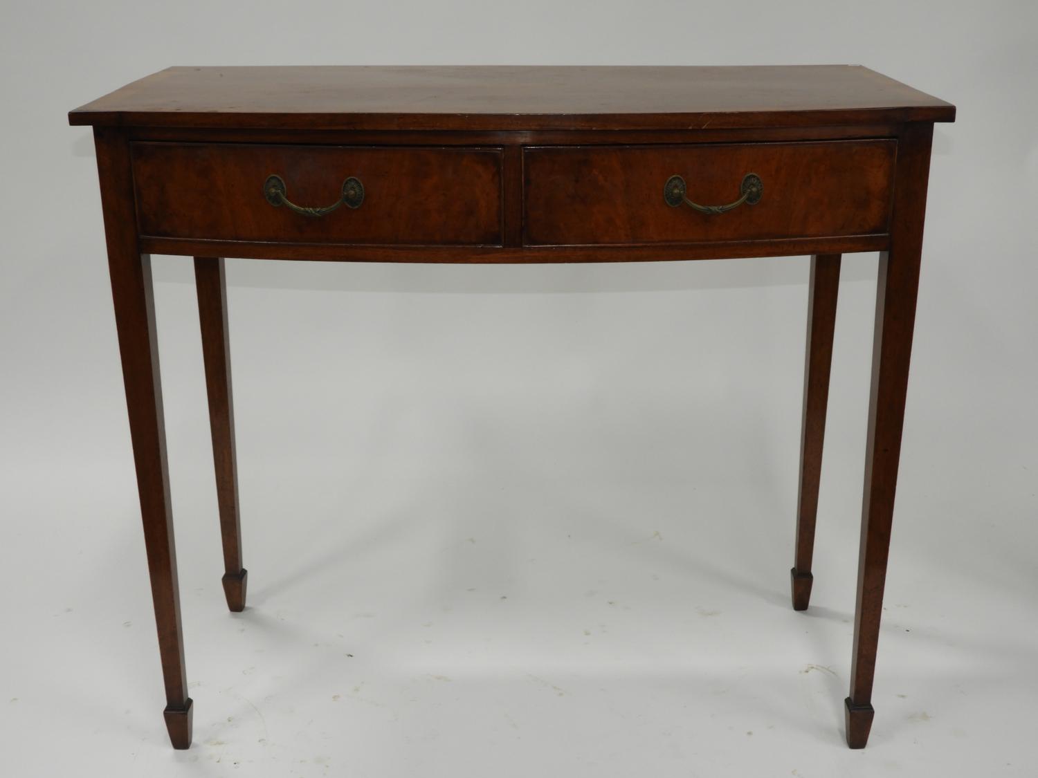 george iii-style cross banded mahogany two drawer side table, c.1920, 34" x 39" x 19 3/4"
