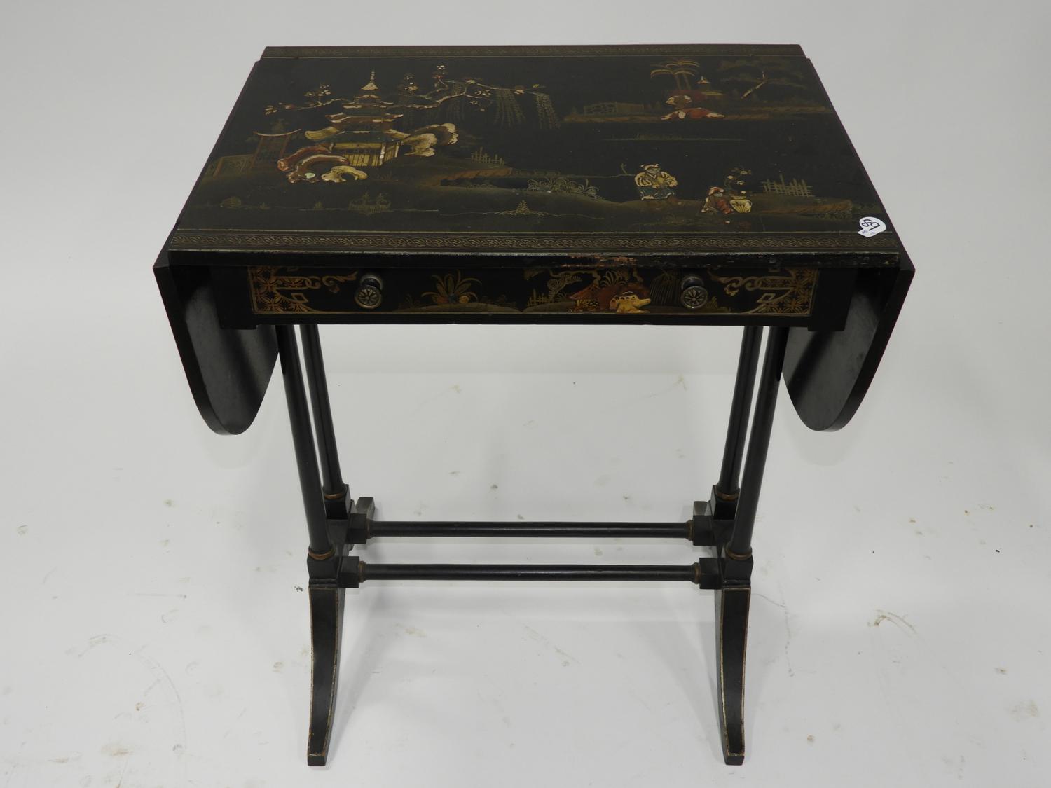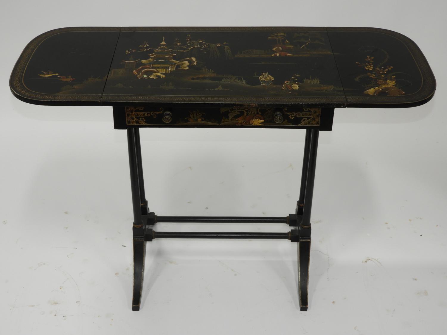 japanned drop leaf side table, c.1930, 24 1/2" x 37" x 15"