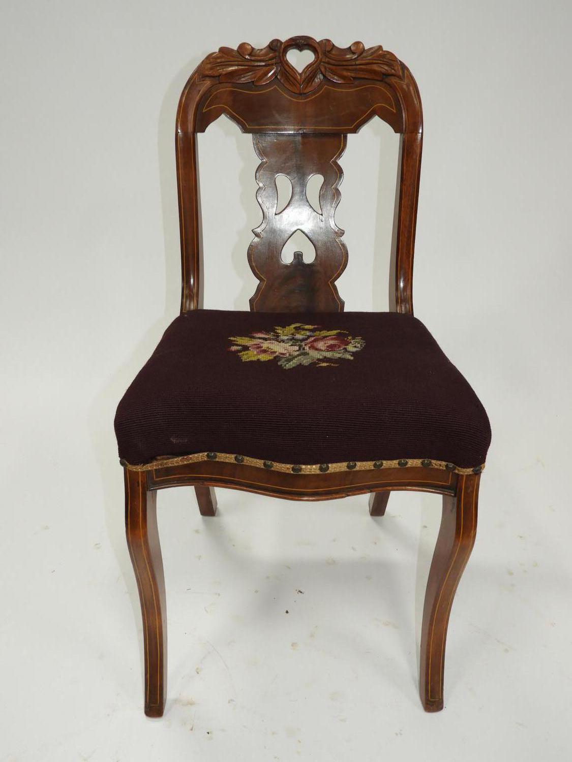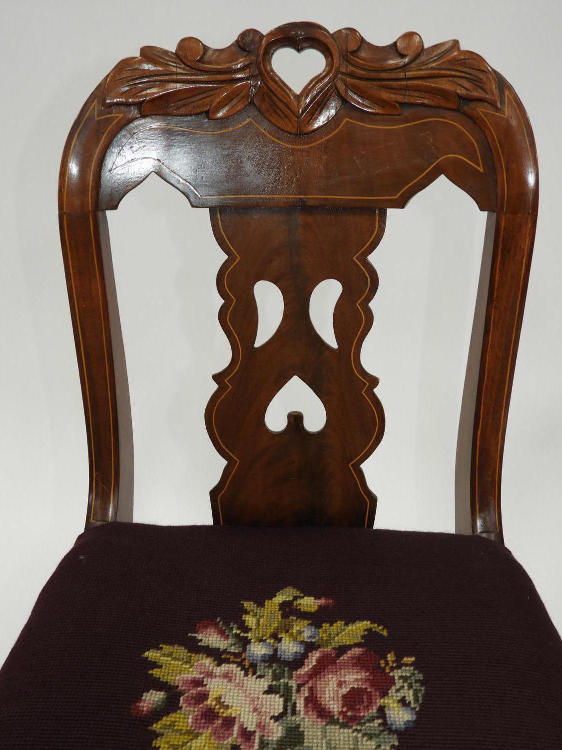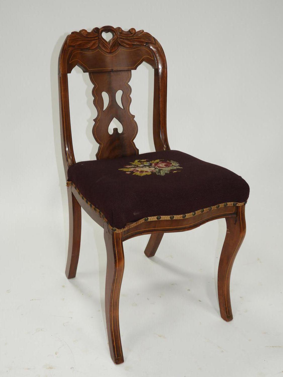 canadian empire inlaid mahogany side chair with needlepoint seat, 19th century, 33" x 17"