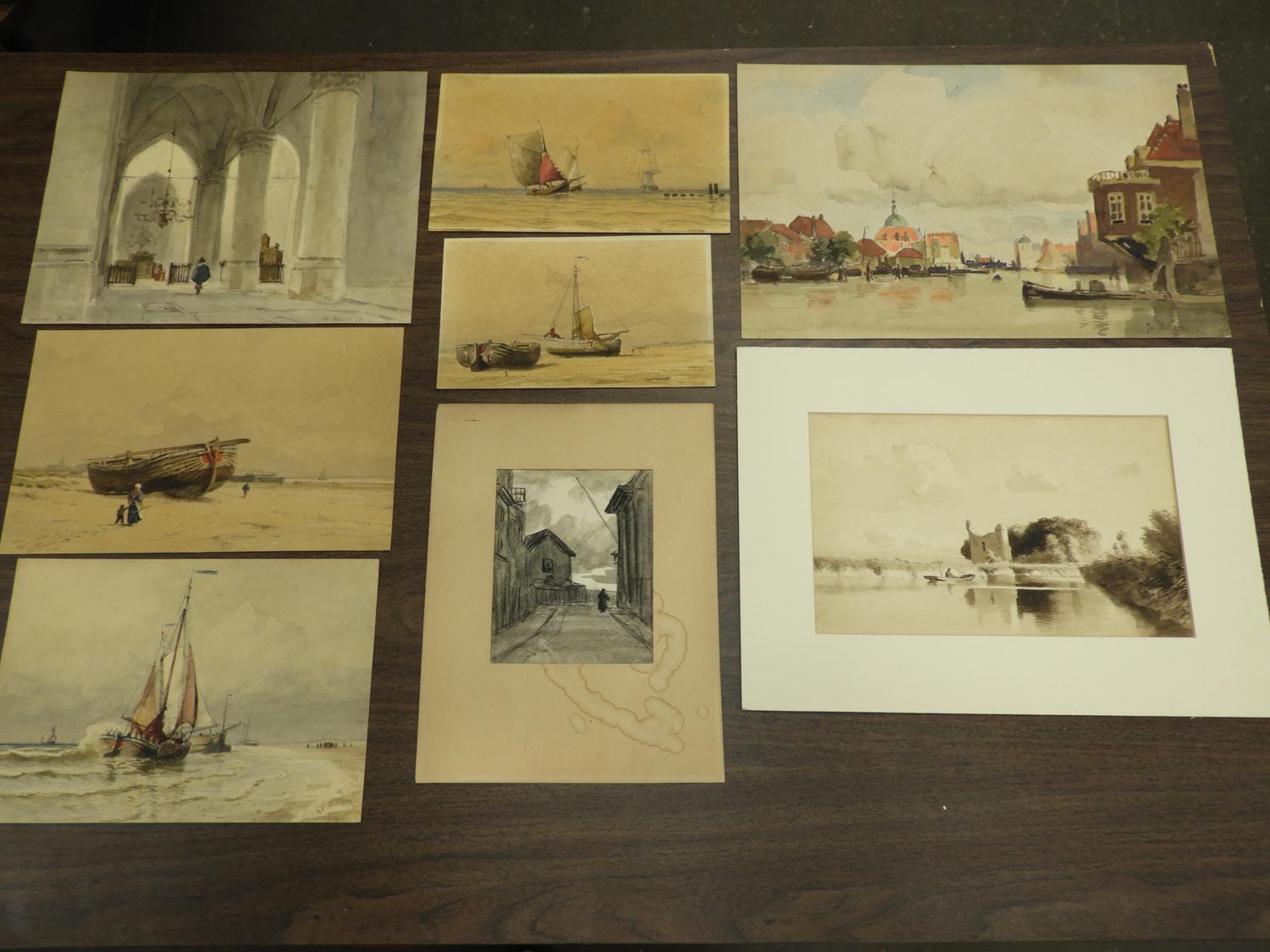 lot of 8 unframed watercolours, 11" x 16" and smaller