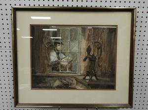 john alexander lockhart, watercolour, 13" x 17", "children looking through window"