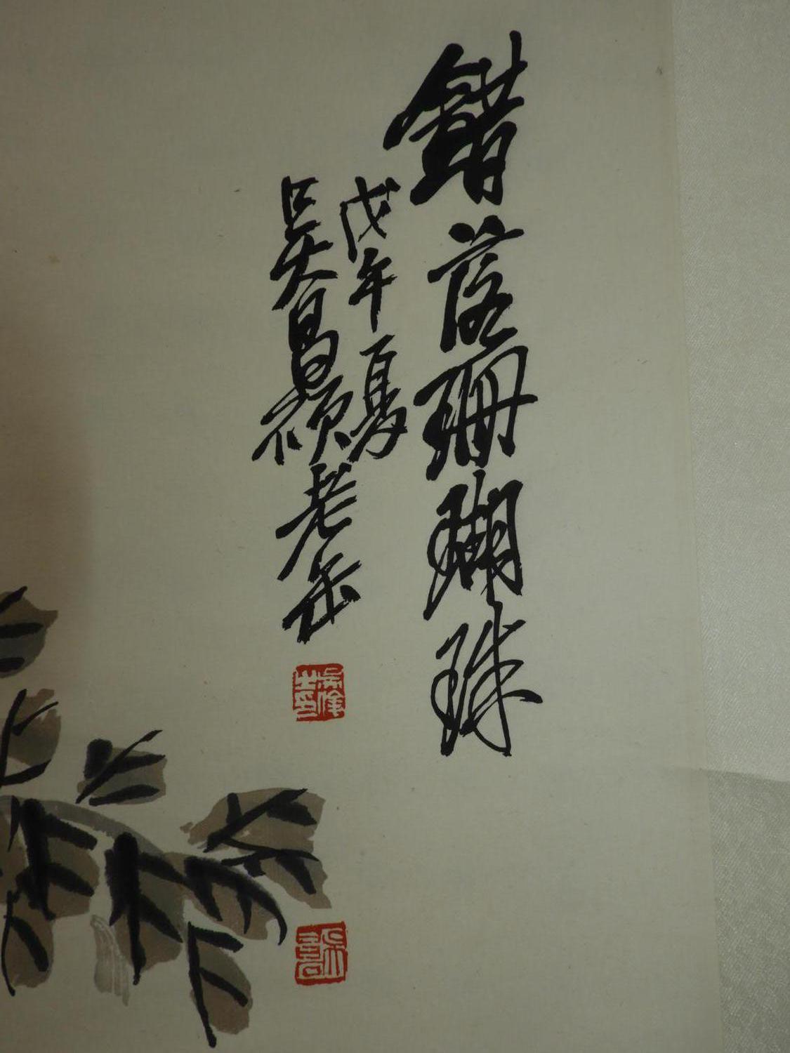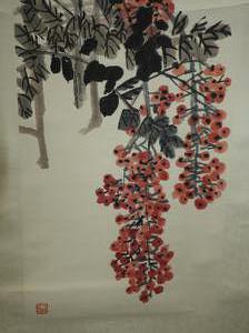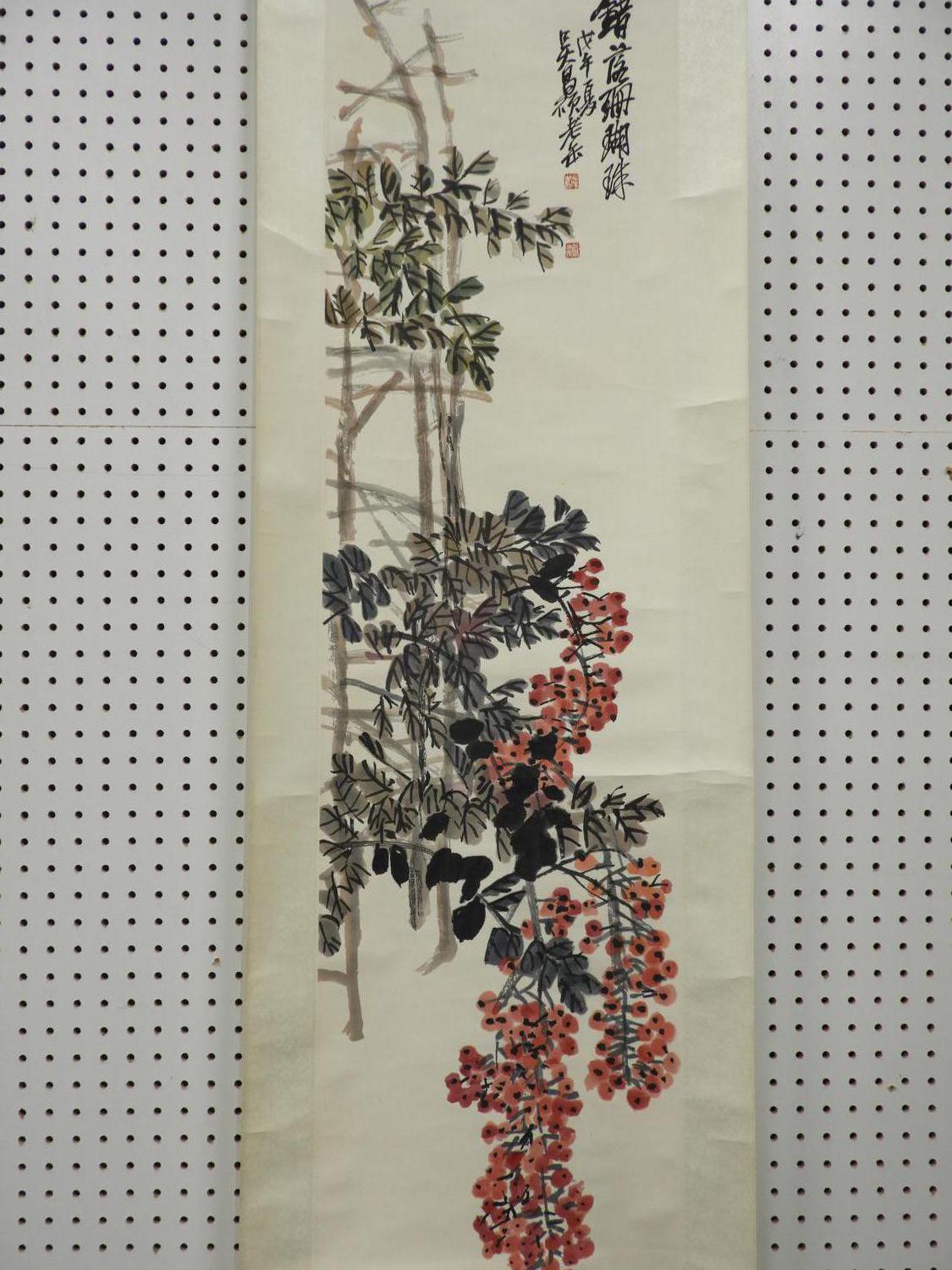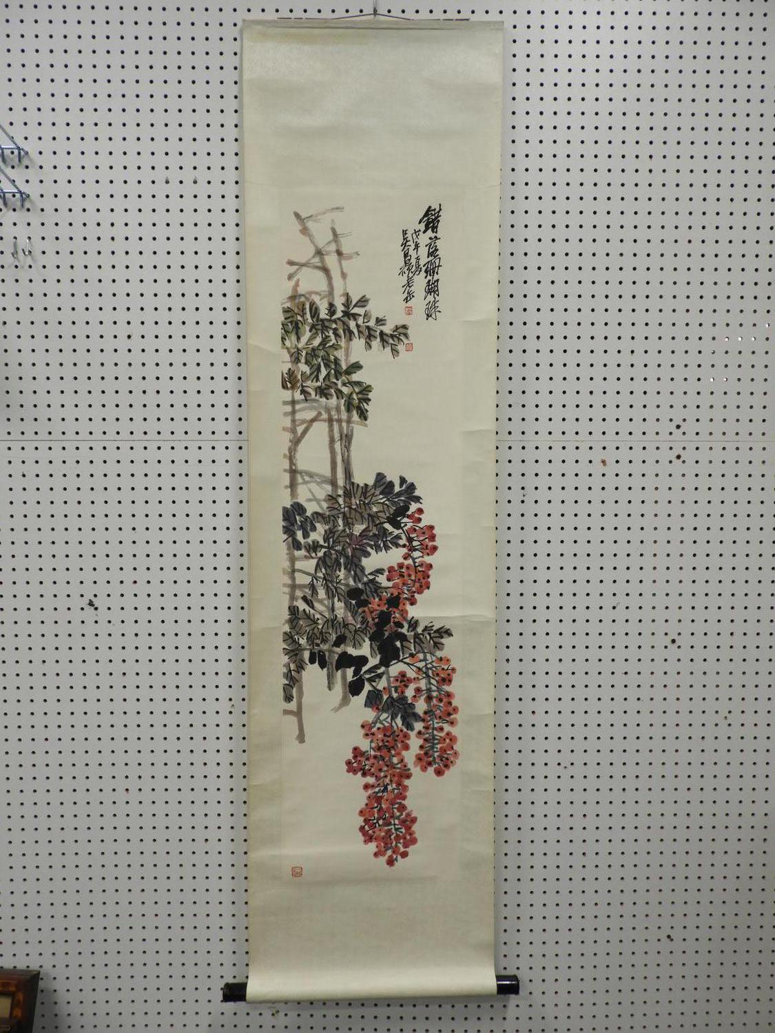 chinese watercolour scroll painting, 20th century, signed, 65" x 17", "flowering branches"