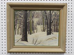 nellie keillor, oil on board, 13" x 16", "winter scene"