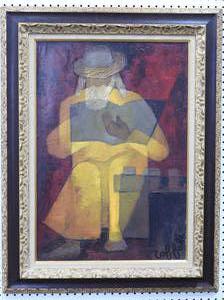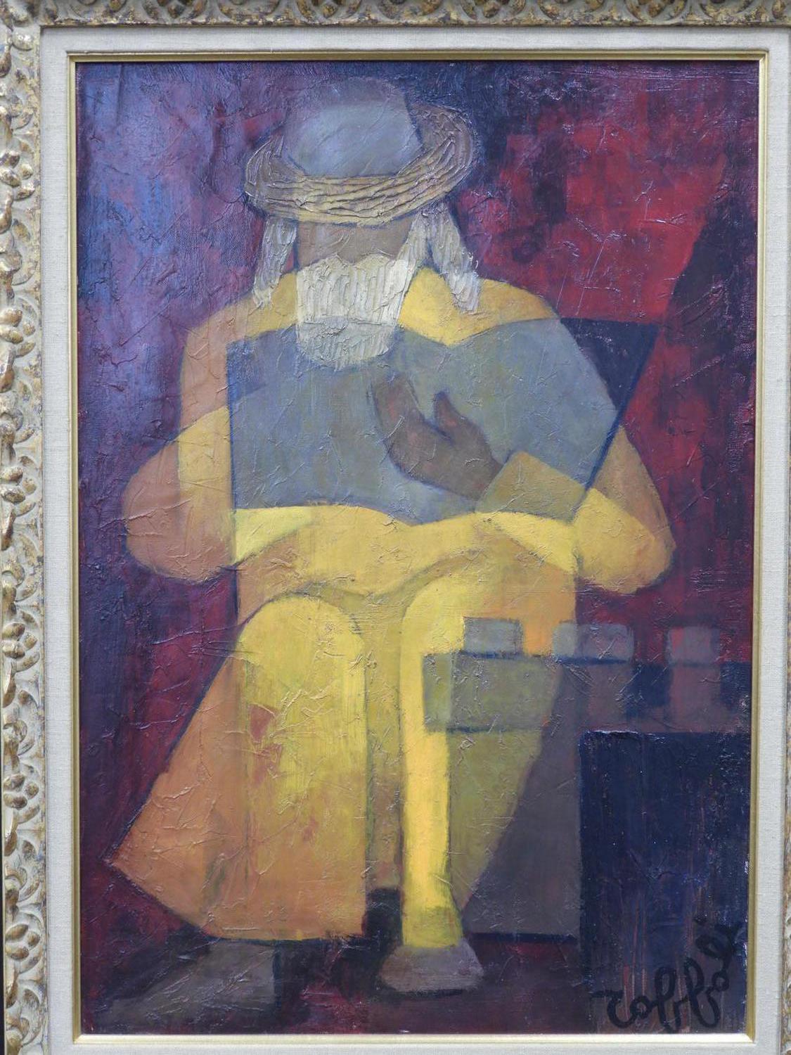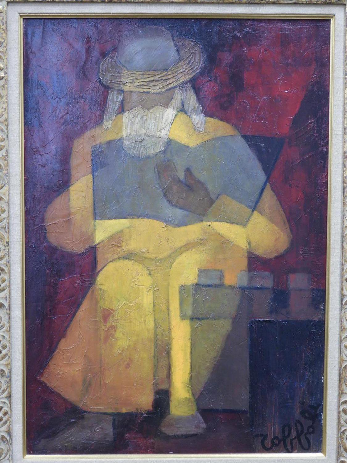 louis toffoli (1907-1999), oil on canvas, 28 1/2" x 20", "lecteur sage"