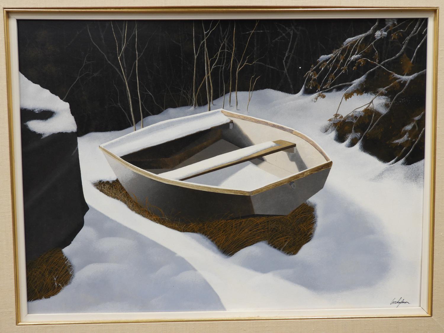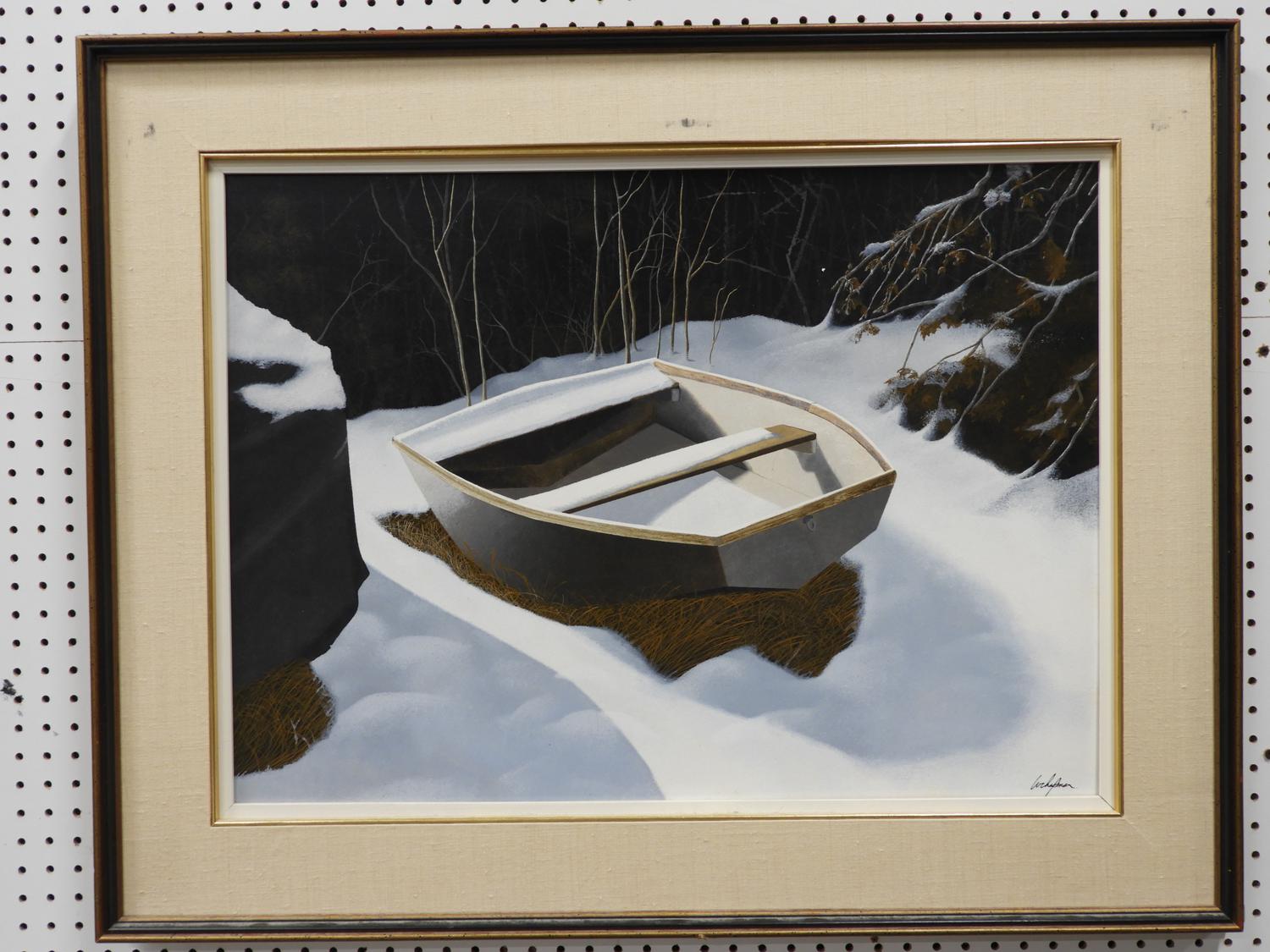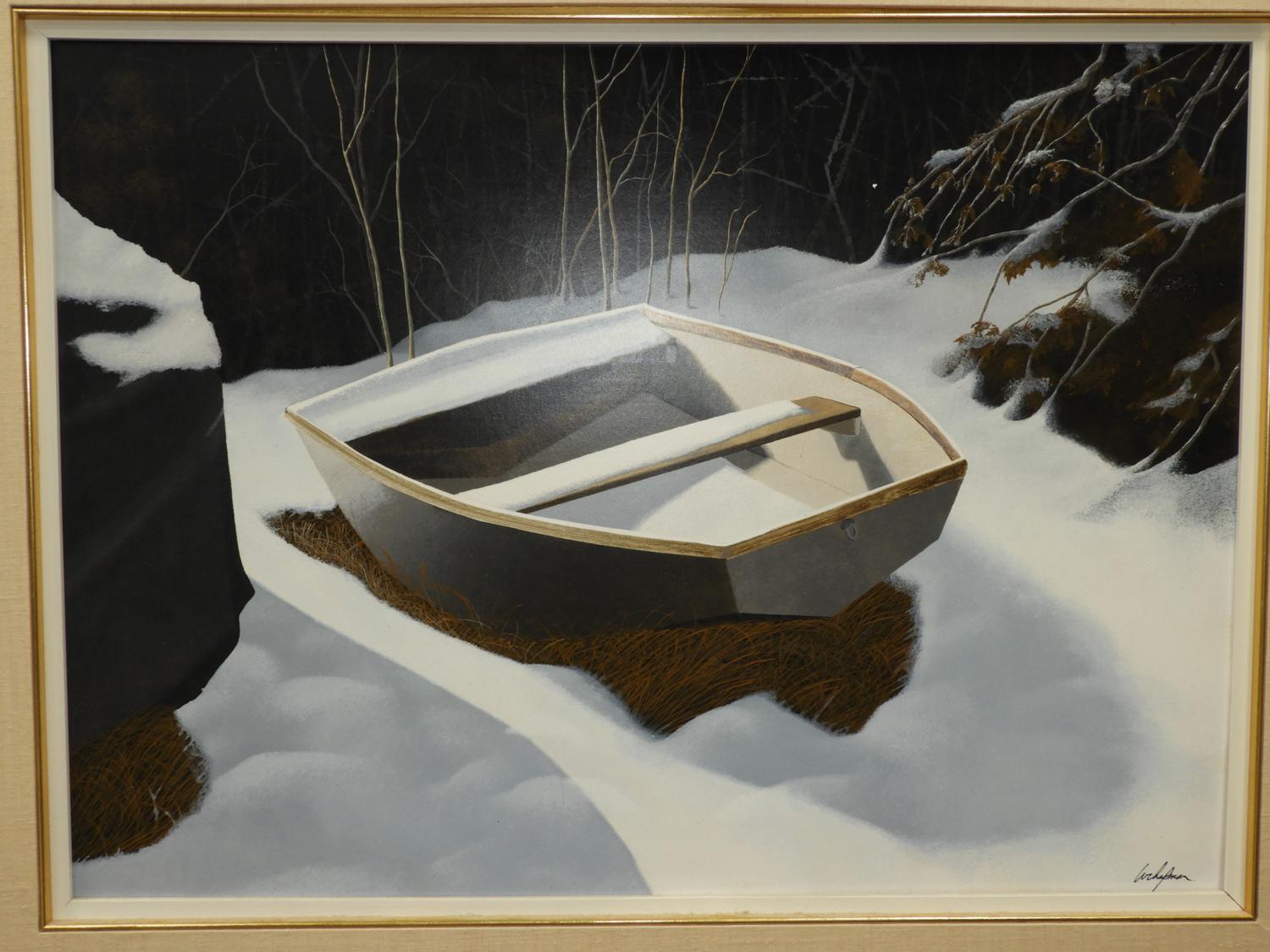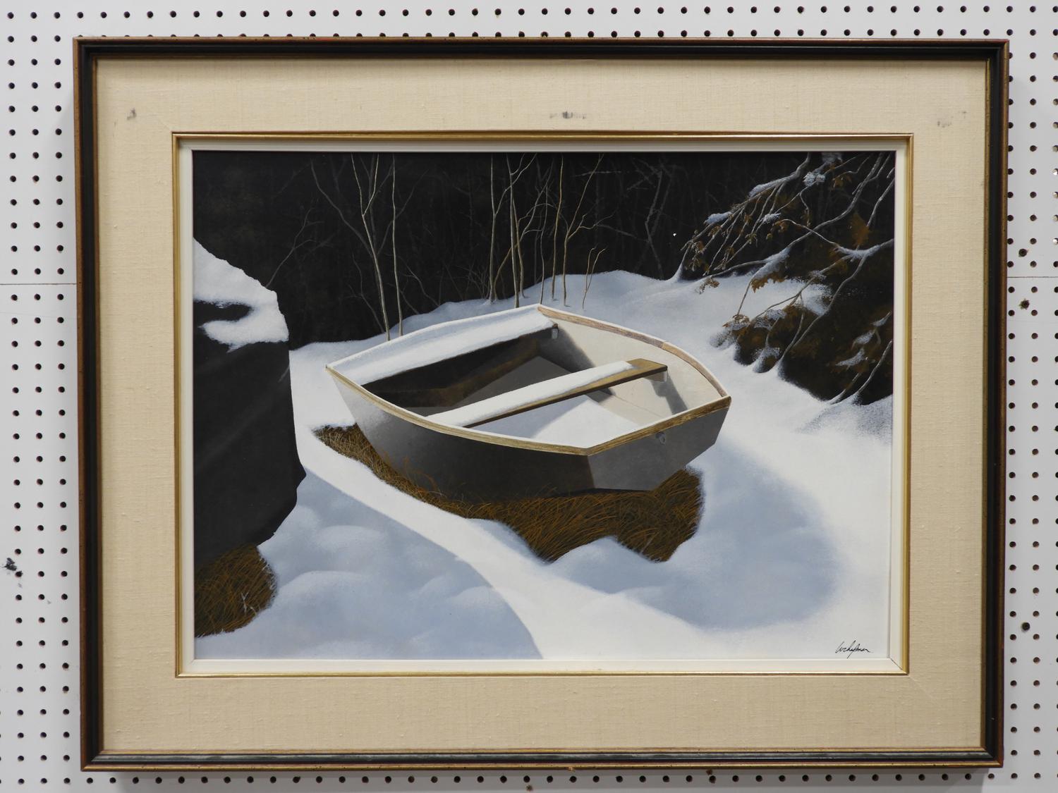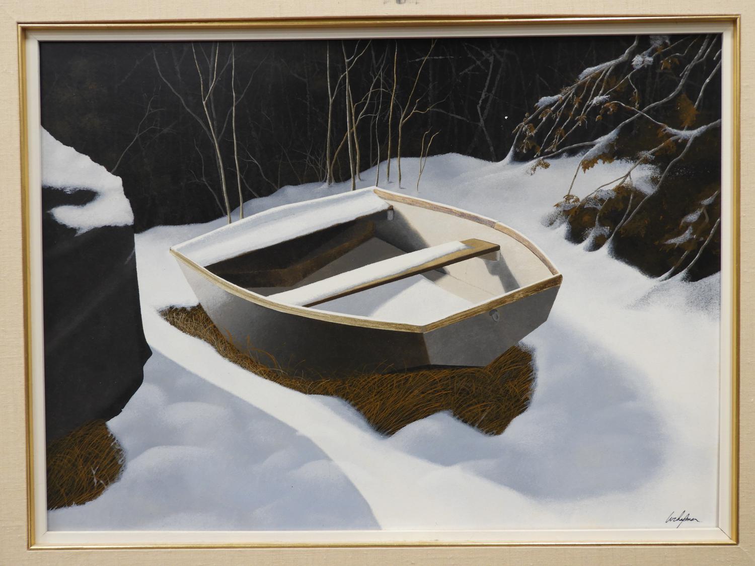 indistinctly signed, oil on board, 22" x 30", "the dingy"