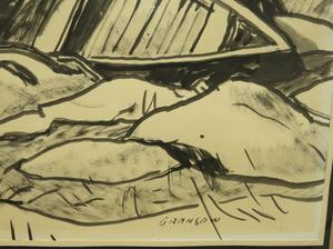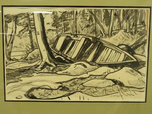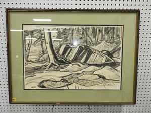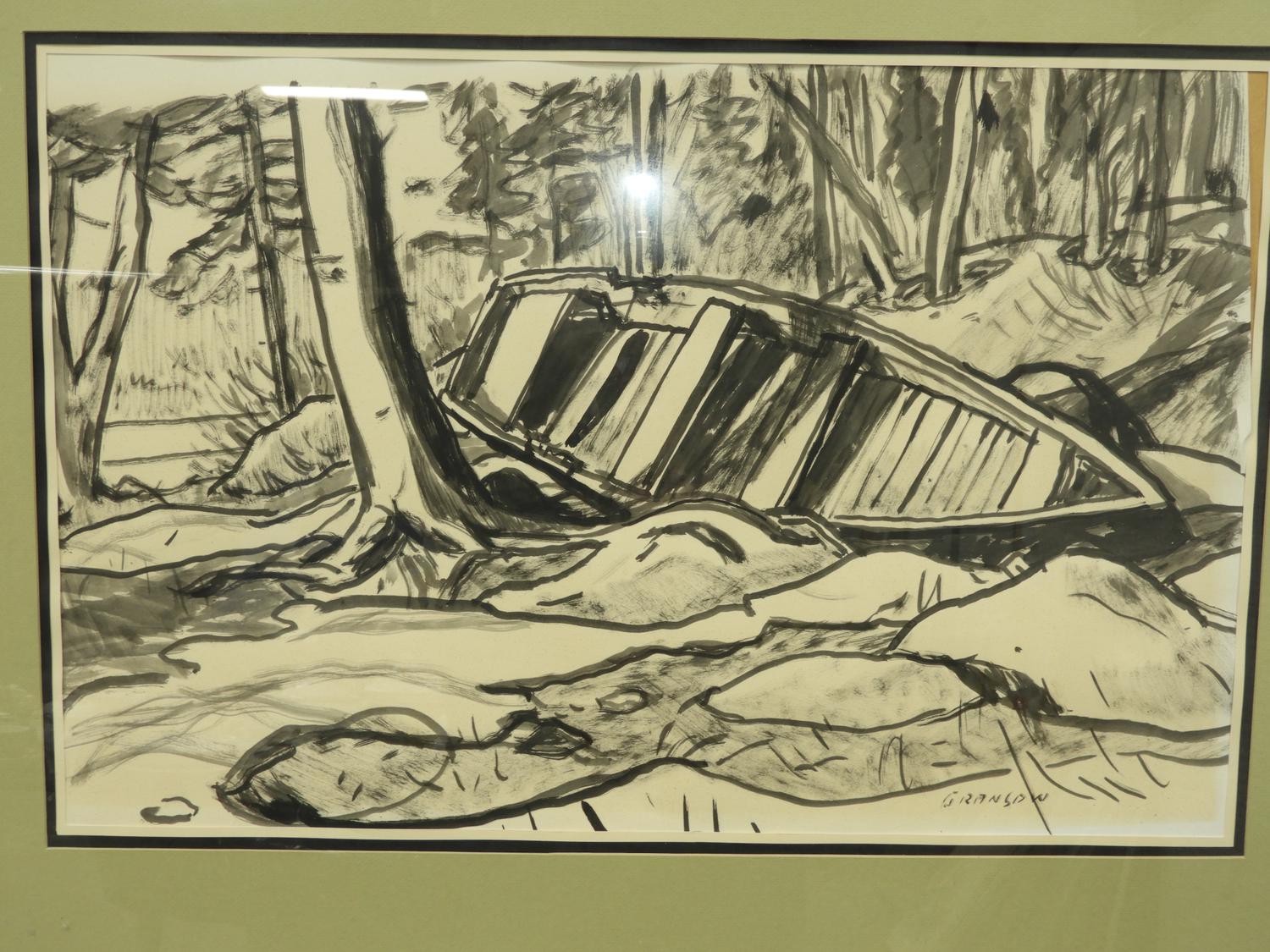 helmut gransow (1921-2012), ink drawing, 15 3/4" x 23 5/8", "boat at the shoreline"