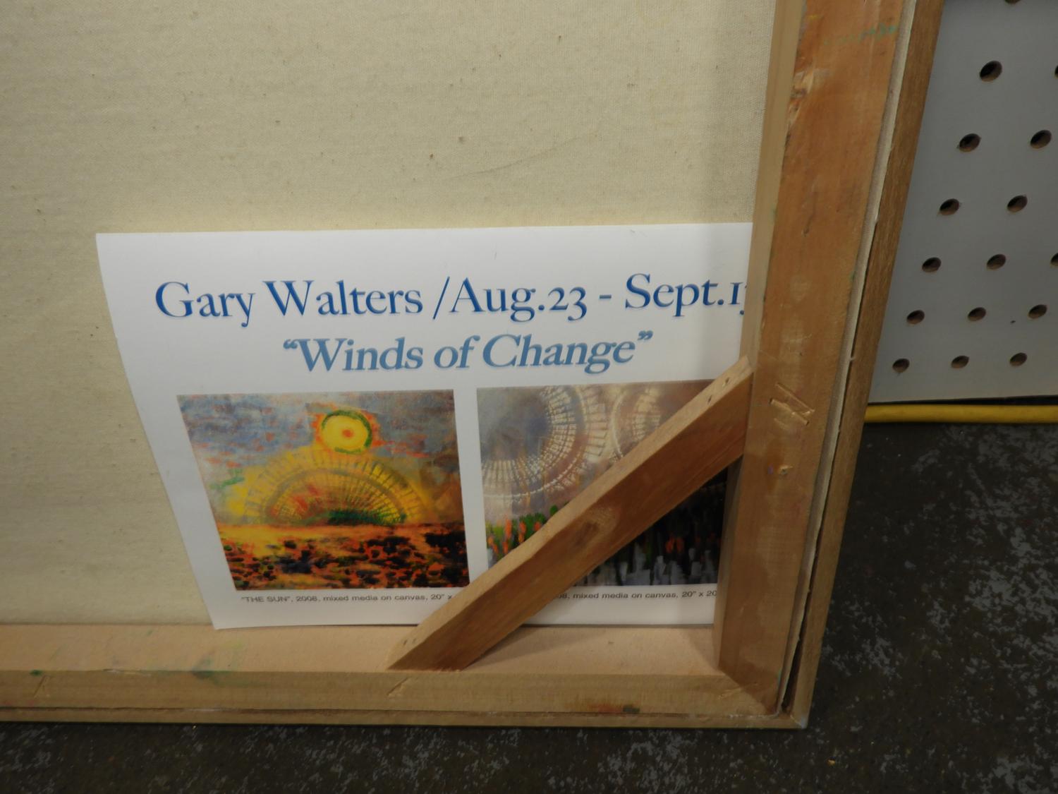 gary walters, two mixed media on canvas, 24" x 24" and smaller.