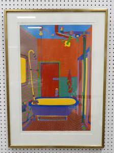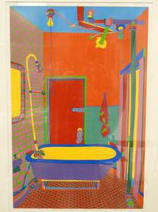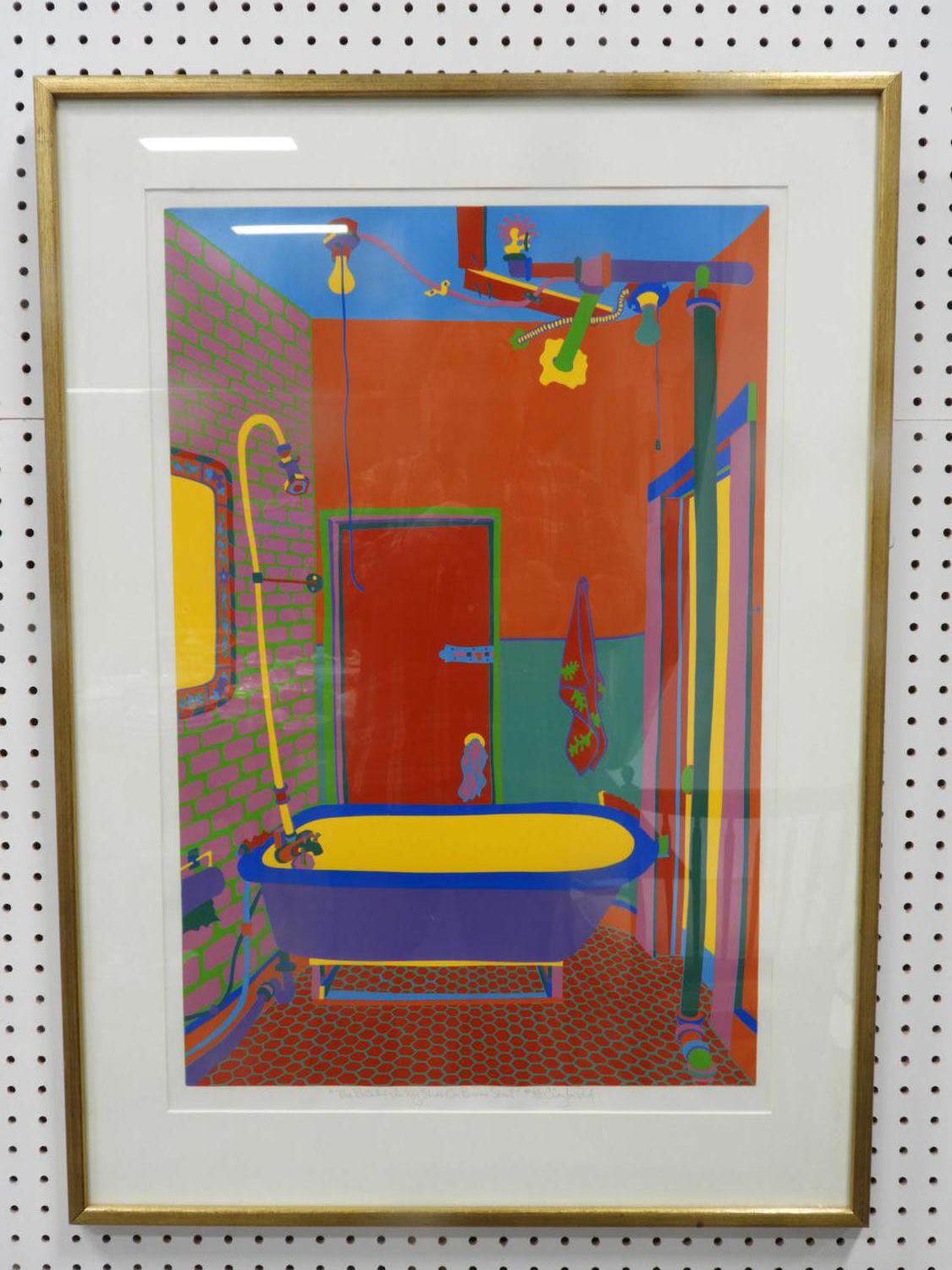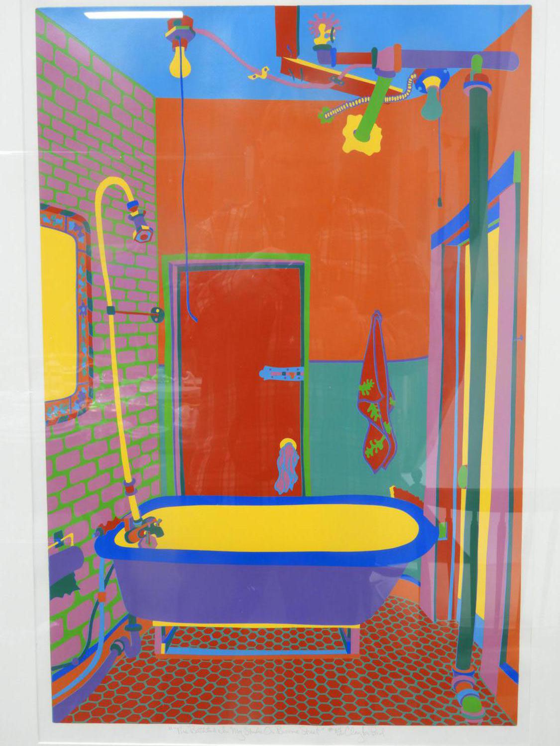 clayton pond (b.1941), screen print in colours #64/100, 27" x 18", "the bathtub in my studio on broome street"