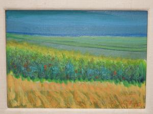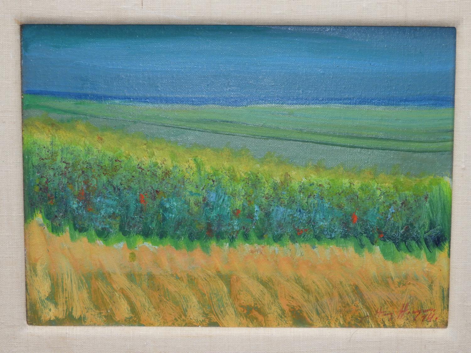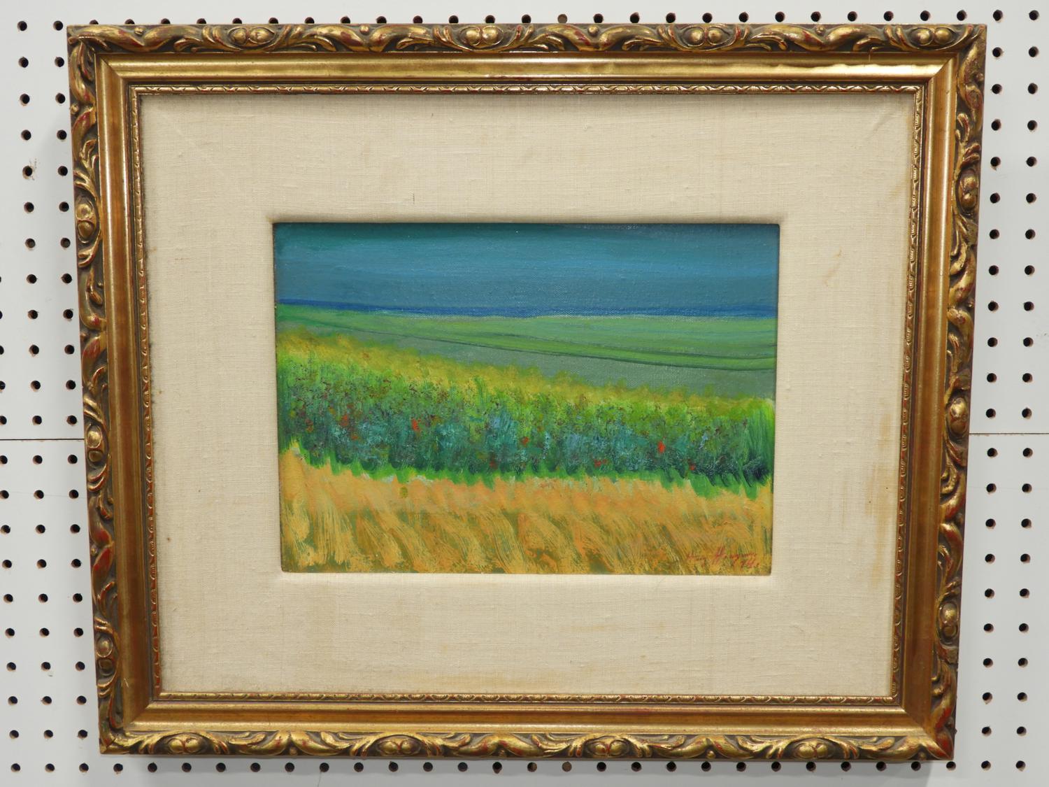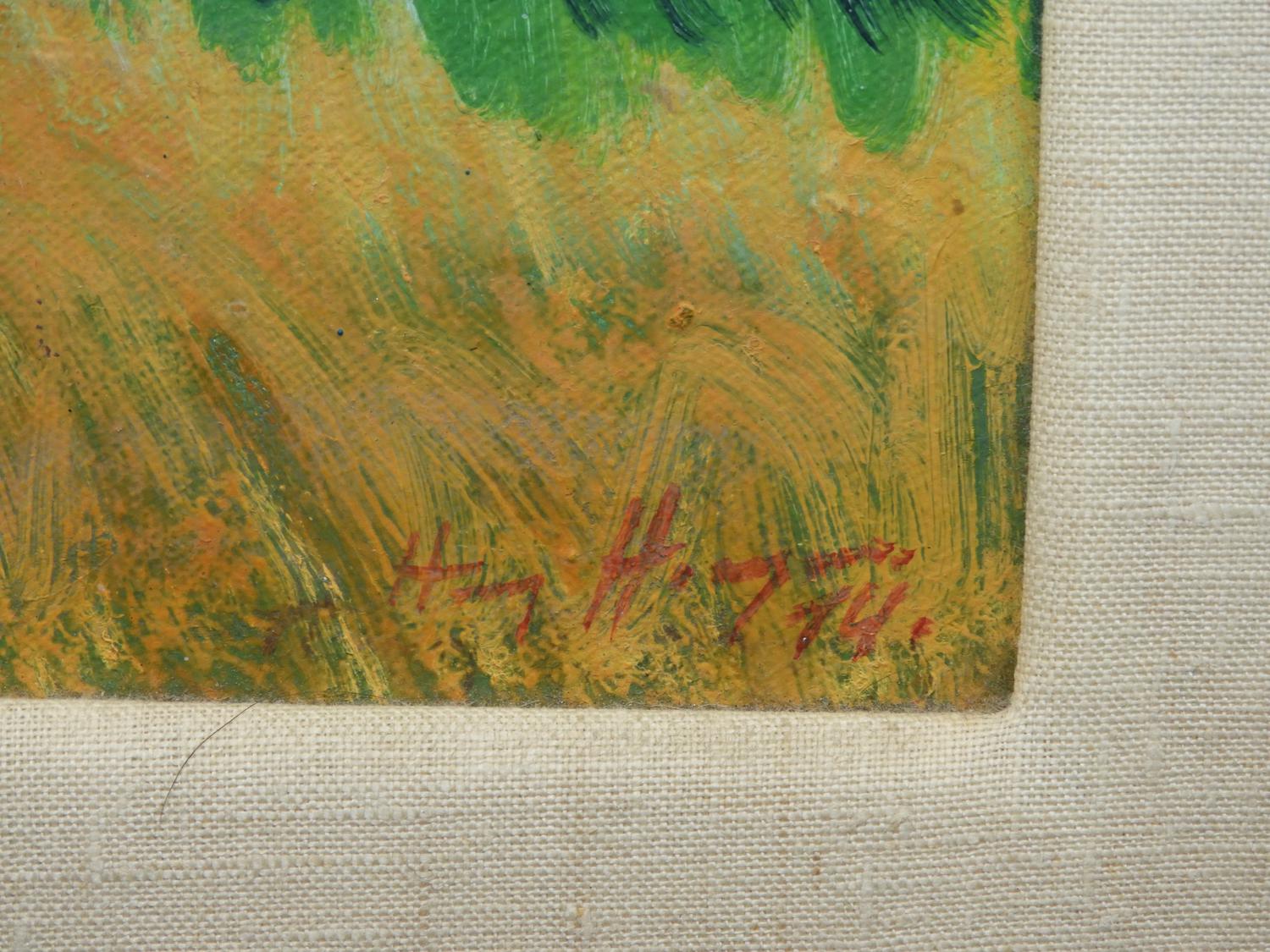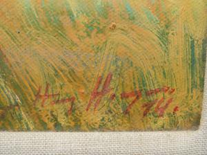 indistinctly signed oil on canvas, d.1974, 10" x 14", "landscape"