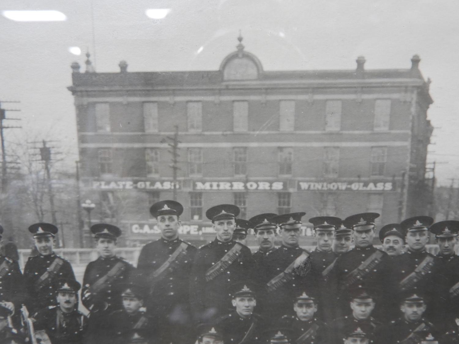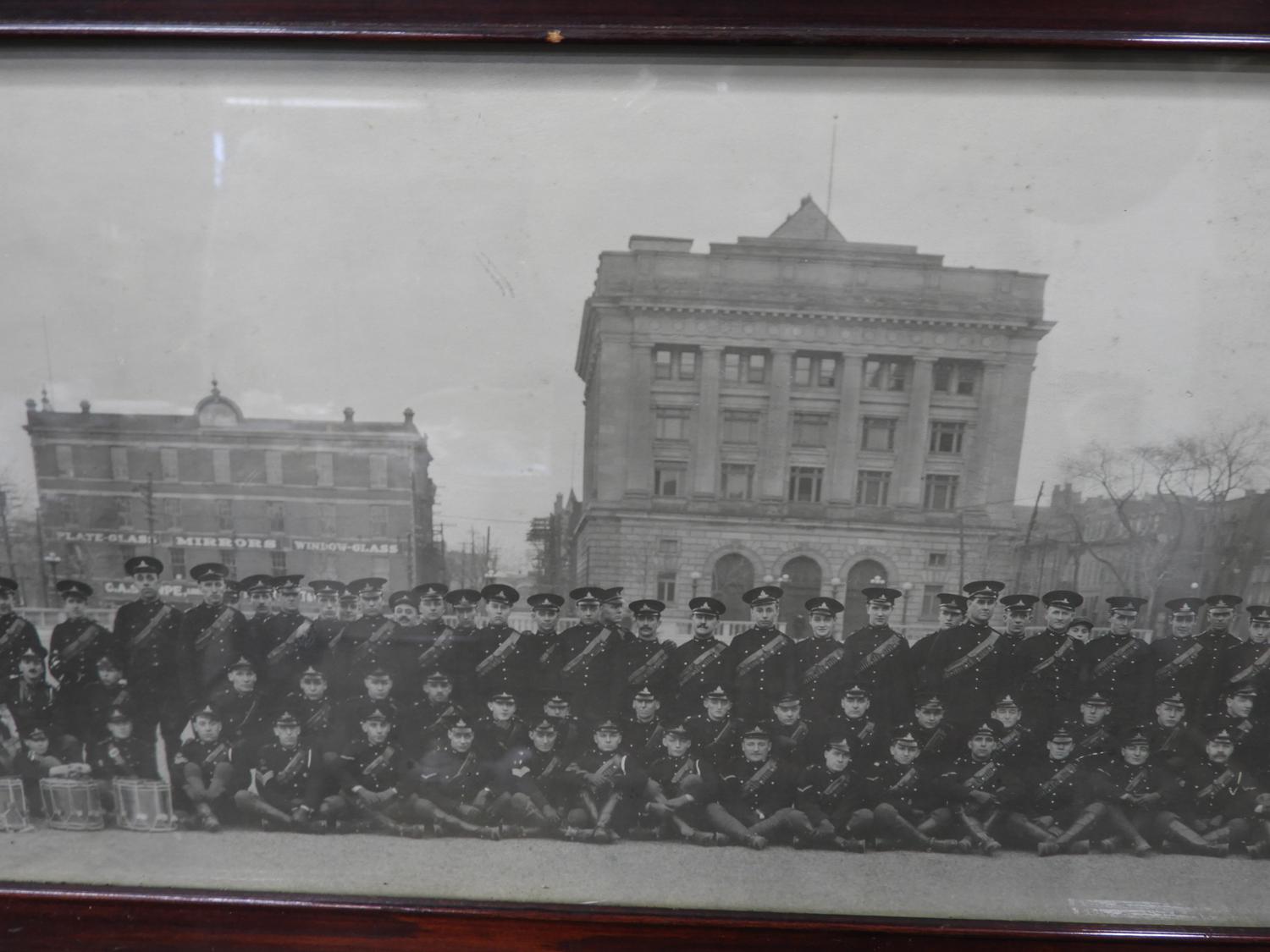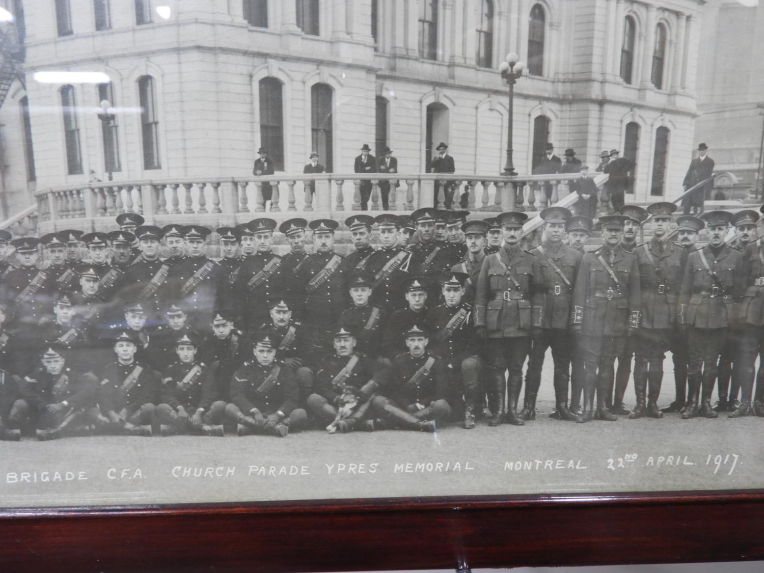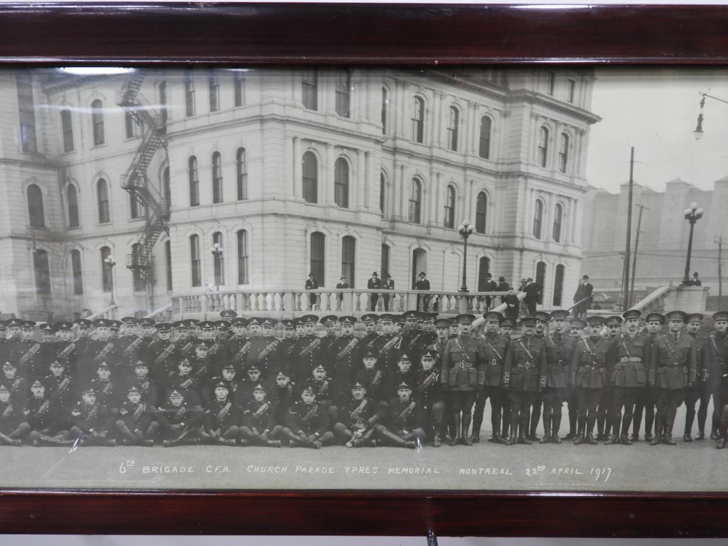 framed panoramic photograph of the 6th brigade c.f.a. church parade ypres memorial montreal, 22nd april 1917, w. j. armstrong - photographer, montreal