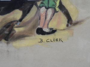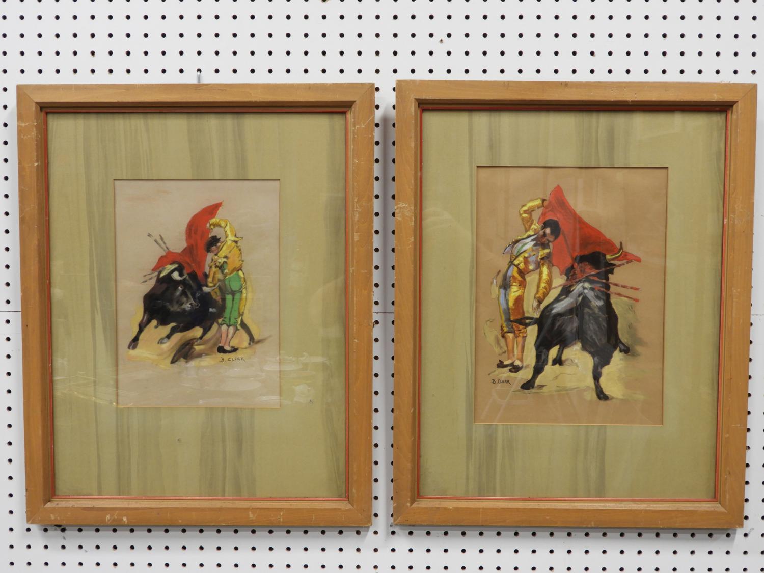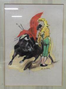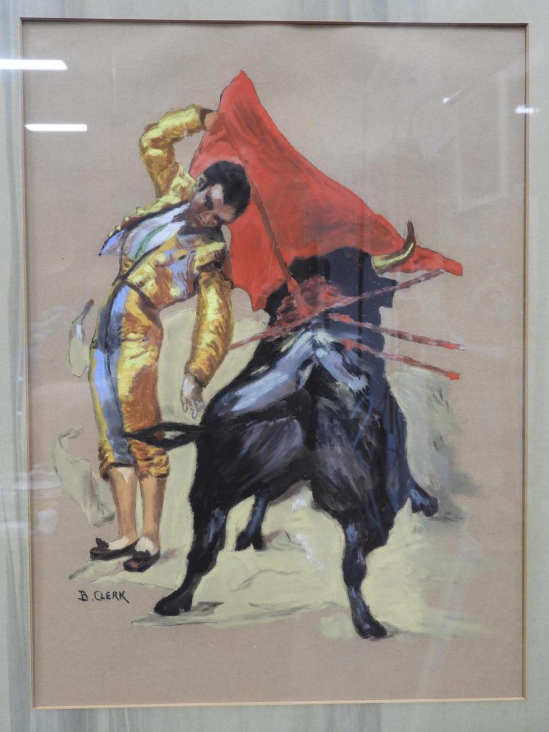 b. clerk, pair of pastels, 14 1/2" x 10" and smaller, "matadors"